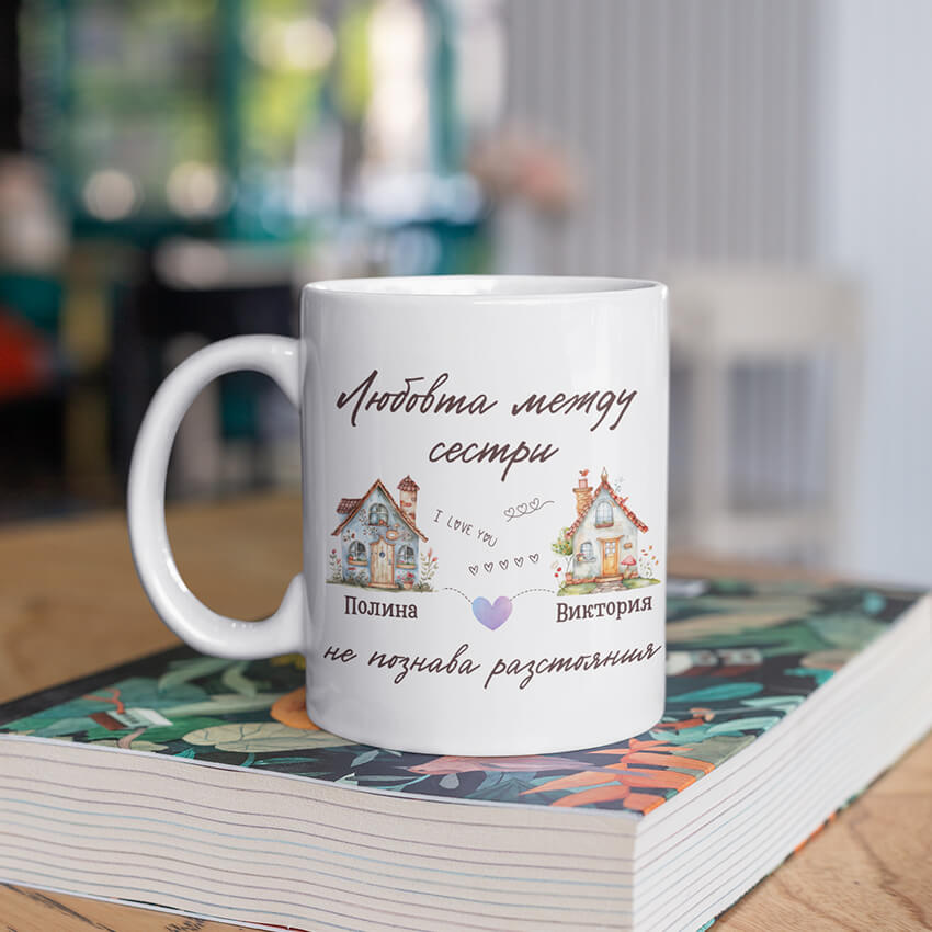 Тази чаша с послание е чудесна идея за подарък за сестри, включващ и персонализация на имената