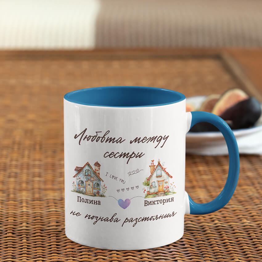 Чаша Любовта Между Сестри е част от колекцията ни чаши с надписи за подарък. Този дизайн е чудесна идея за подарък за сестри.