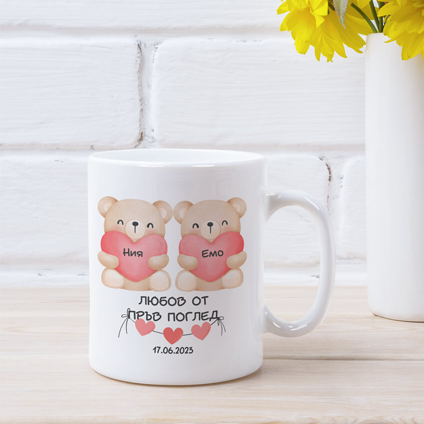 Чаша Любов от Пръв Поглед е красива чаша, която да подариш на половинката си и да отпразнувате деня на вашето запознанство. Персонализирай я с имената ви и най-значимата за вас дата!