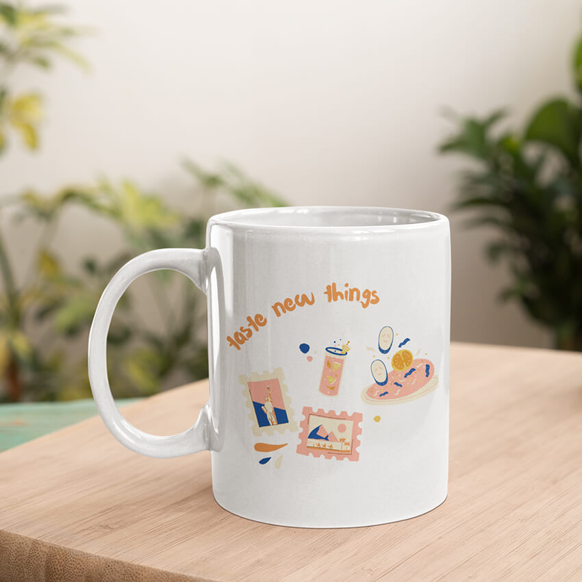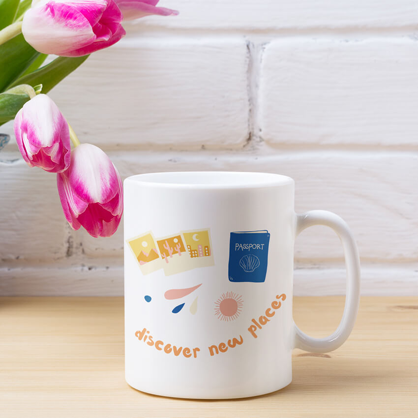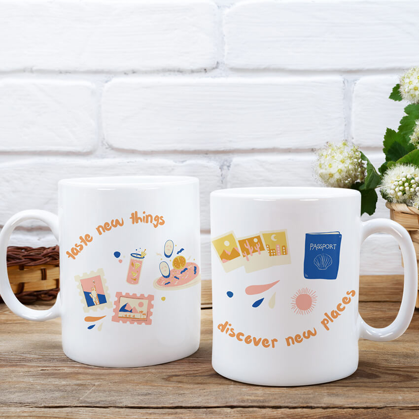 Чаша New Things New Places е част от колекцията ни чаши с надписи и картинки за добро настроение.