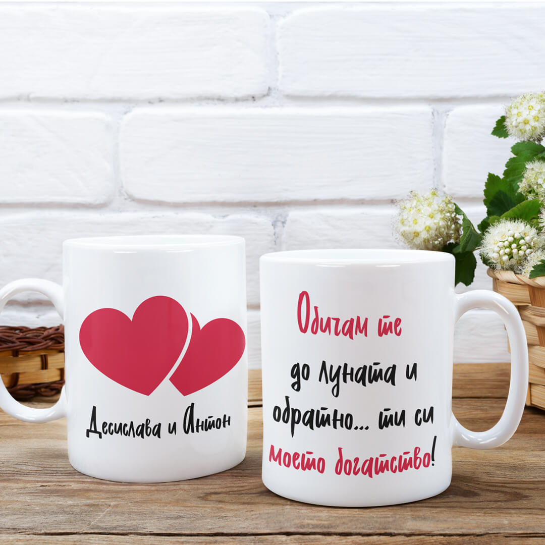 Чаша Обичам те е с възможност за персонализация на имената. Разгледай чудната ни колекция от чаши за влюбени!
