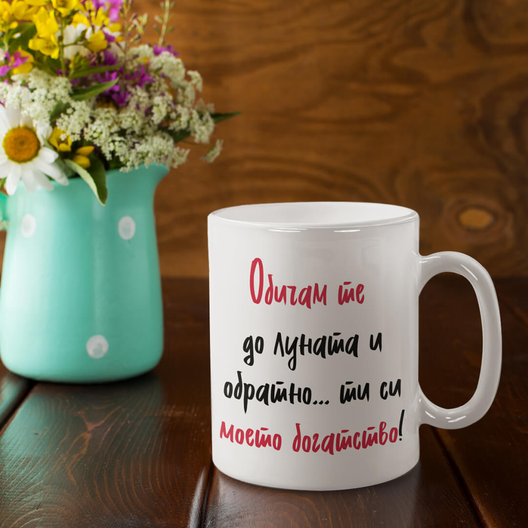 Чаша Обичам те е красива чаша с надпис и възможност за персонализация на имената, подходяща за подарък за Свети Валентин, с дизайн създаден от INAMOOD.BG – онлайн магазинът, който създава настроение! При нас ще откриете различни забавни и свежи дизайни на тениски с щампи, чаши с надписи с надписи и илюстрации, еко чанти и атрактивното арт хоби рисуване по номера. Обичаме да е цветно и забавно. Moже да ни изпратите също така и ваш дизайн за чаша или идея, по която ние да изработим такъв специално за вас! Без значение дали търсите уникален подарък за вашите близки и приятели или просто искате да си вземете нещо ново, магазинът за настроение има какво да ви предложи. Нашата мисия е Вашата усмивка! Предлагаме и безплатна доставка при поръчка на стойност над 100 лв.
