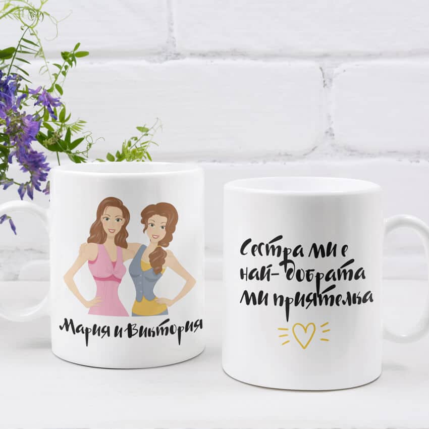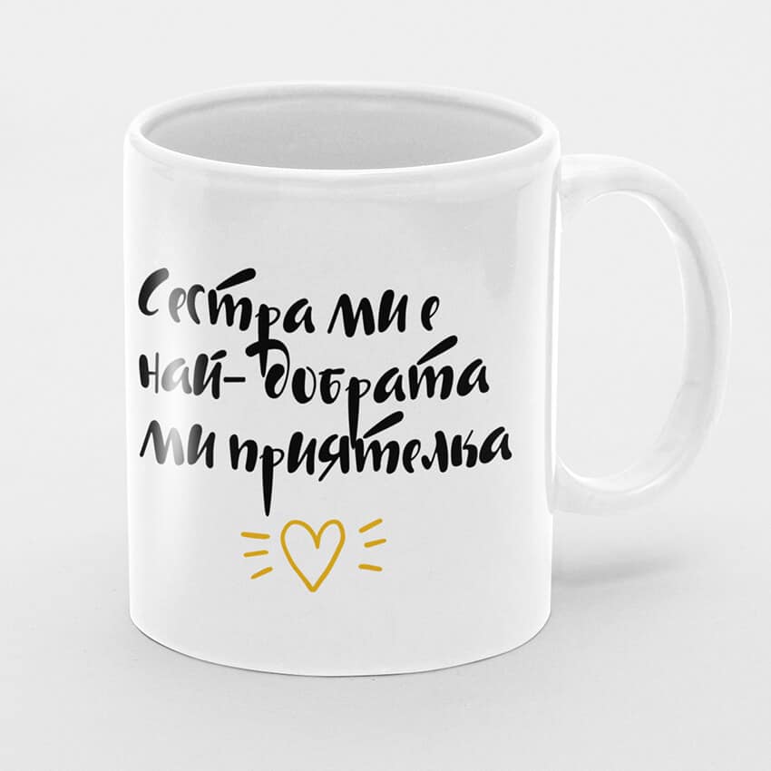 Чаша Сестра ми е Най-Добрата ми Приятелка е с възможност за персонализация на имената. Направи един наистина личен подарък!