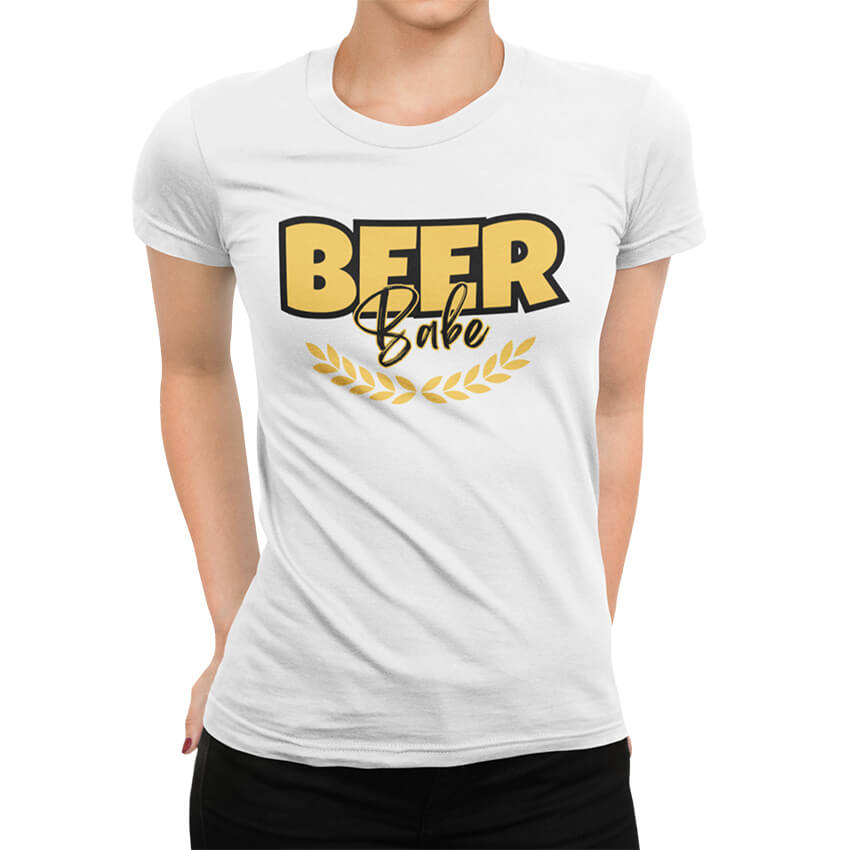 Дамска Тениска Beer Baby e тениска със забавна щампа, част от колекцията ни тениски с бира създадена от In a MOOD – Онлайн магазин за тениски с щампи и надписи. Ние сме магазинът за настроение и създаваме дизайни на мъжки и дамски тениски. Стараем се да предлагаме забавни и оригинални дизайни на различни теми. Правим тениски, с които Вие да можете да изразите себе си по уникален начин. Ако имате нужда, можем да създадем и тениска по ваш дизайн. Можем също да променим по Ваше желание елементи в някои от предлаганите в магазина щампи и надписи. За целта само се свържете с нас чрез контактната форма на сайта или на email: info@inamood.bg.