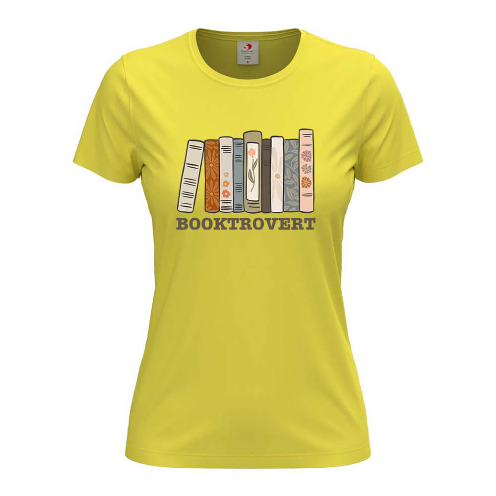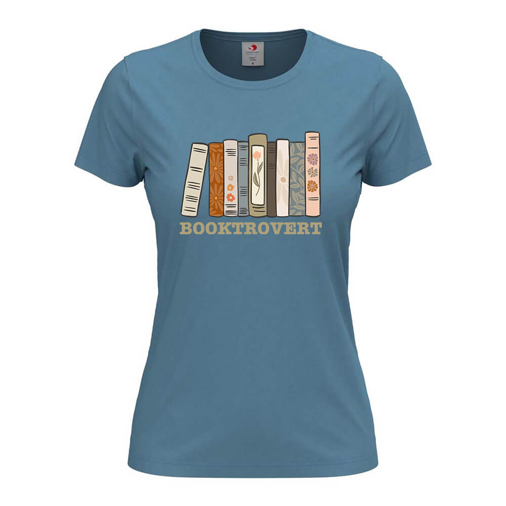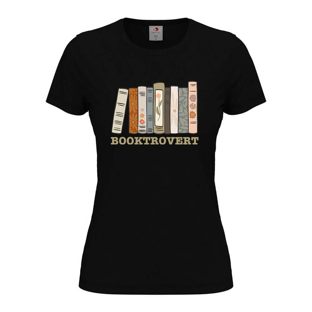 Дамска Тениска Booktrovert e тениска с дизайн, създадена от In a MOOD – Онлайн магазин за тениски с щампи и надписи. Ние сме магазинът за настроение и създаваме дизайни на мъжки и дамски тениски. Стараем се да предлагаме забавни и оригинални дизайни на различни теми. Правим тениски, с които Вие да можете да изразите себе си по уникален начин. Ако имате нужда, можем да създадем и тениска по Ваш дизайн. Можем също да променим по Ваше желание елементи в някои от предлаганите в магазина щампи и надписи. За целта само се свържете с нас чрез контактната форма на сайта или на email: info@inamood.bg. Предлагаме също така голямо разнообразие от ярки, светли и тъмни цветове – 17 цвята за мъжките и 17 цвята за дамските модели тениски. На различните дизайни сме поставили различни цветове, които пасват със съответния дизайн, но ако Вие искате друг цвят на тениската, не се колебайте да ни попитате. На Ваше разположение сме за всякакви въпроси и информация относно магазина и предлаганите от нас продукти. Имаме една основна цел – да зарадваме и усмихнем колкото се може повече хора!