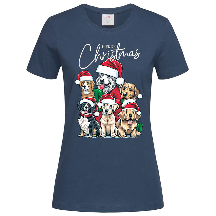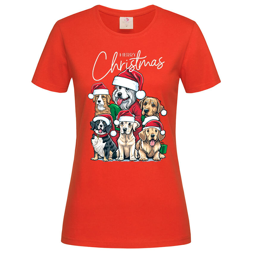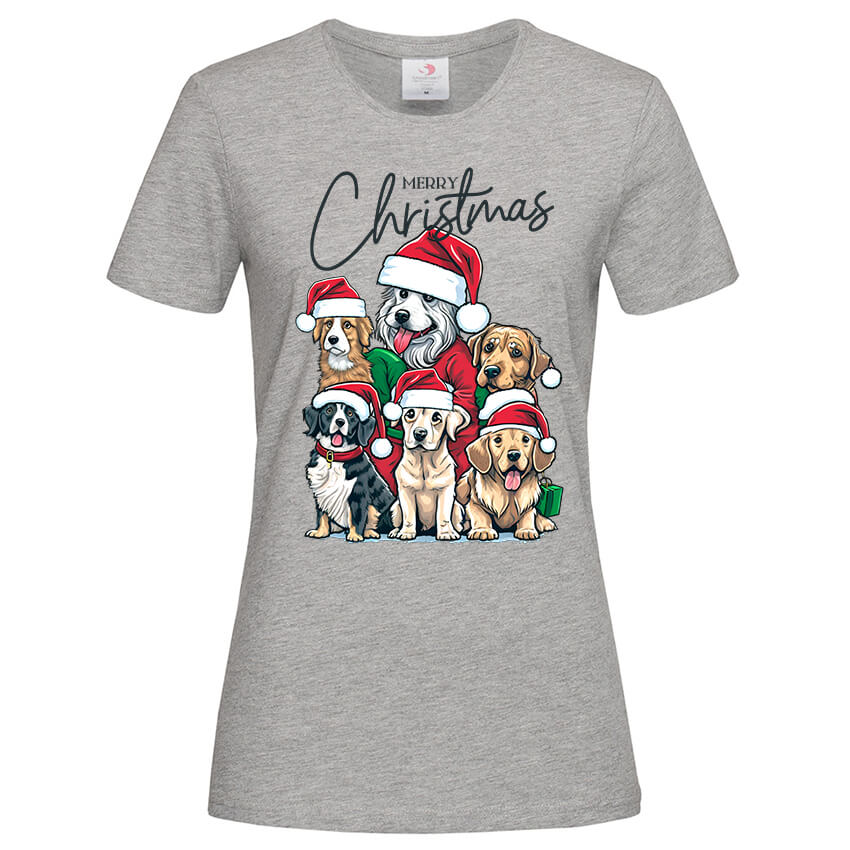 Сладурски дизайн на тениска в духа на коледа с различни кученца