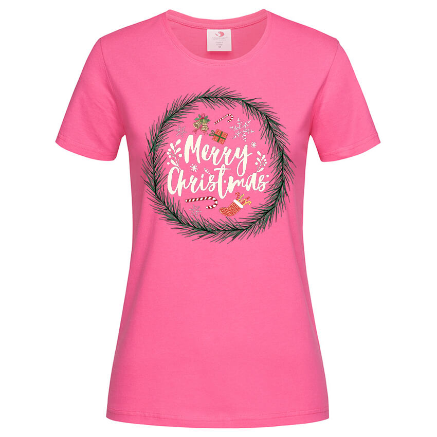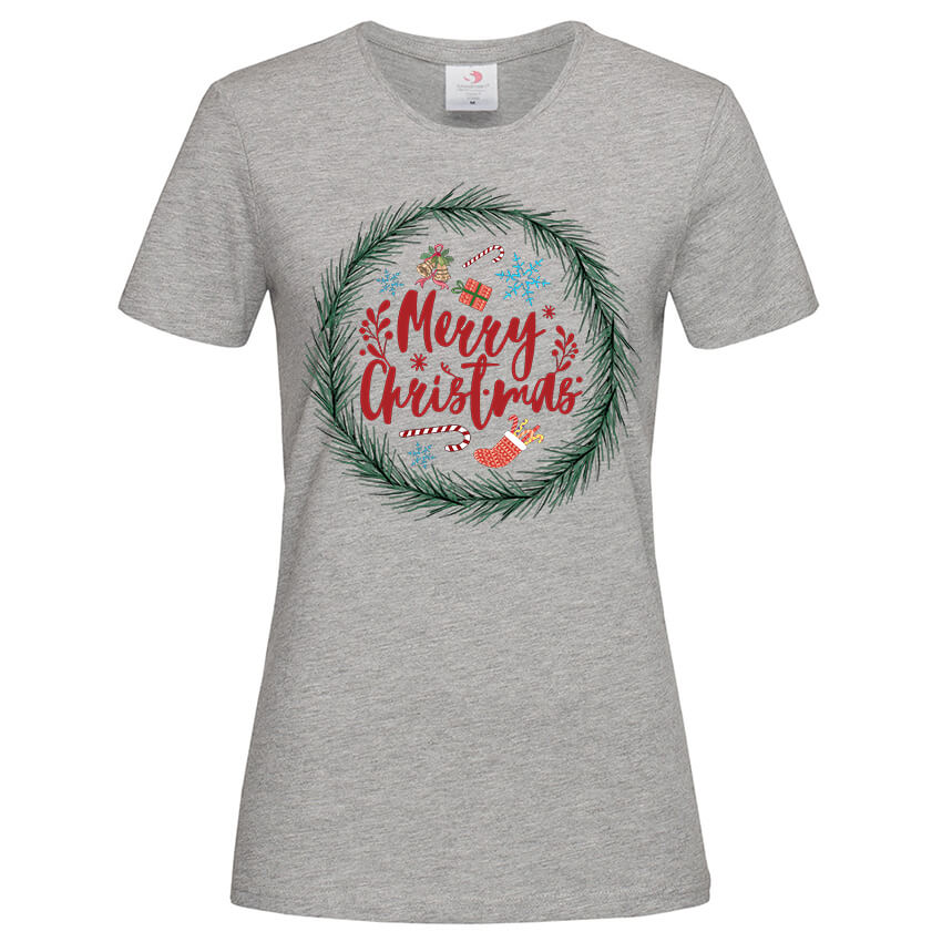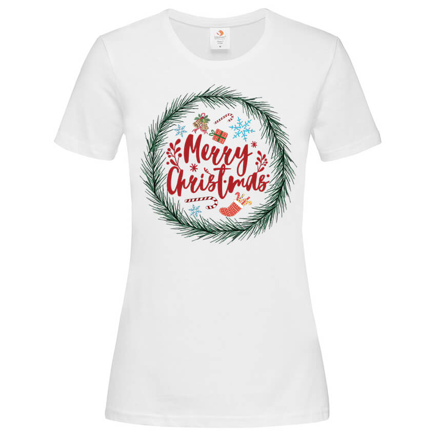 Дамска Тениска Christmas Wreath e тениска с коледен дизайн, създадена от In a MOOD – Онлайн магазин за тениски с щампи и надписи. Ние сме магазинът за настроение и създаваме дизайни на мъжки и дамски тениски. Стараем се да предлагаме забавни и оригинални дизайни на различни теми. Правим тениски, с които Вие да можете да изразите себе си по уникален начин. Ако имате нужда, можем да създадем и тениска по ваш дизайн. Можем също да променим по Ваше желание елементи в някои от предлаганите в магазина щампи и надписи. За целта само се свържете с нас чрез контактната форма на сайта или на email: info@inamood.bg. Предлагаме също така голямо разнообразие от ярки, светли и тъмни цветове – 17 цвята за мъжките и 17 цвята за дамските модели тениски. На различните дизайни сме поставили различни цветове, които пасват със съответния дизайн, но ако Вие искате друг цвят на тениската, не се колебайте да ни попитате. На ваше разположение сме за всякакви въпроси и информация относно магазина и предлаганите от нас продукти. Имаме една основна цел – да зарадваме и усмихнем колкото се може повече хора!