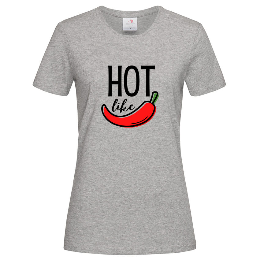 Дамска тениска Hot e тениска с готина щампа, създадена от In a MOOD – Онлайн магазин за тениски с щампи и надписи. Ние сме магазинът за настроение и създаваме дизайни на мъжки и дамски тениски. Стараем се да предлагаме забавни и оригинални дизайни на различни теми. Правим тениски, с които Вие да можете да изразите себе си по уникален начин. Ако имате нужда, можем да създадем и тениска по ваш дизайн. Можем също да променим по Ваше желание елементи в някои от предлаганите в магазина щампи и надписи. За целта само се свържете с нас чрез контактната форма на сайта или на email: info@inamood.bg. Предлагаме също така голямо разнообразие от ярки, светли и тъмни цветове – 17 цвята за мъжките и 17 цвята за дамските модели тениски. На различните дизайни сме поставили различни цветове, които пасват със съответния дизайн, но ако Вие искате друг цвят на тениската, не се колебайте да ни попитате. На ваше разположение сме за всякакви въпроси и информация относно магазина и предлаганите от нас продукти. Имаме една основна цел – да зарадваме и усмихнем колкото се може повече хора!