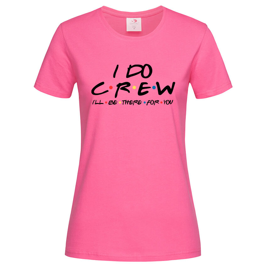 Дамска Тениска I Do Crew e част от колекцията Тениски за Моминско Парти с дизайн, създаден от In a MOOD – Онлайн магазин за тениски с щампи и надписи. Ние сме магазинът за настроение и създаваме дизайни на мъжки и дамски тениски. Стараем се да предлагаме забавни и оригинални дизайни на различни теми. Правим тениски, с които Вие да можете да изразите себе си по уникален начин. Ако имате нужда, можем да създадем и тениска по Ваш дизайн. Можем също да променим по Ваше желание елементи в някои от предлаганите в магазина щампи и надписи. За целта само се свържете с нас чрез контактната форма на сайта или на email: info@inamood.bg. Предлагаме също така голямо разнообразие от ярки, светли и тъмни цветове – 17 цвята за мъжките и 17 цвята за дамските модели тениски. На различните дизайни сме поставили различни цветове, които пасват със съответния дизайн, но ако Вие искате друг цвят на тениската, не се колебайте да ни попитате. На Ваше разположение сме за всякакви въпроси и информация относно магазина и предлаганите от нас продукти. Имаме една основна цел – да зарадваме и усмихнем колкото се може повече хора!