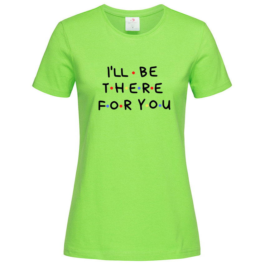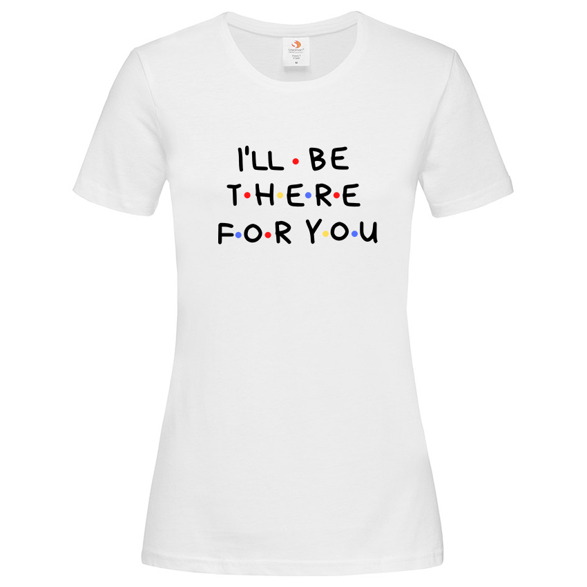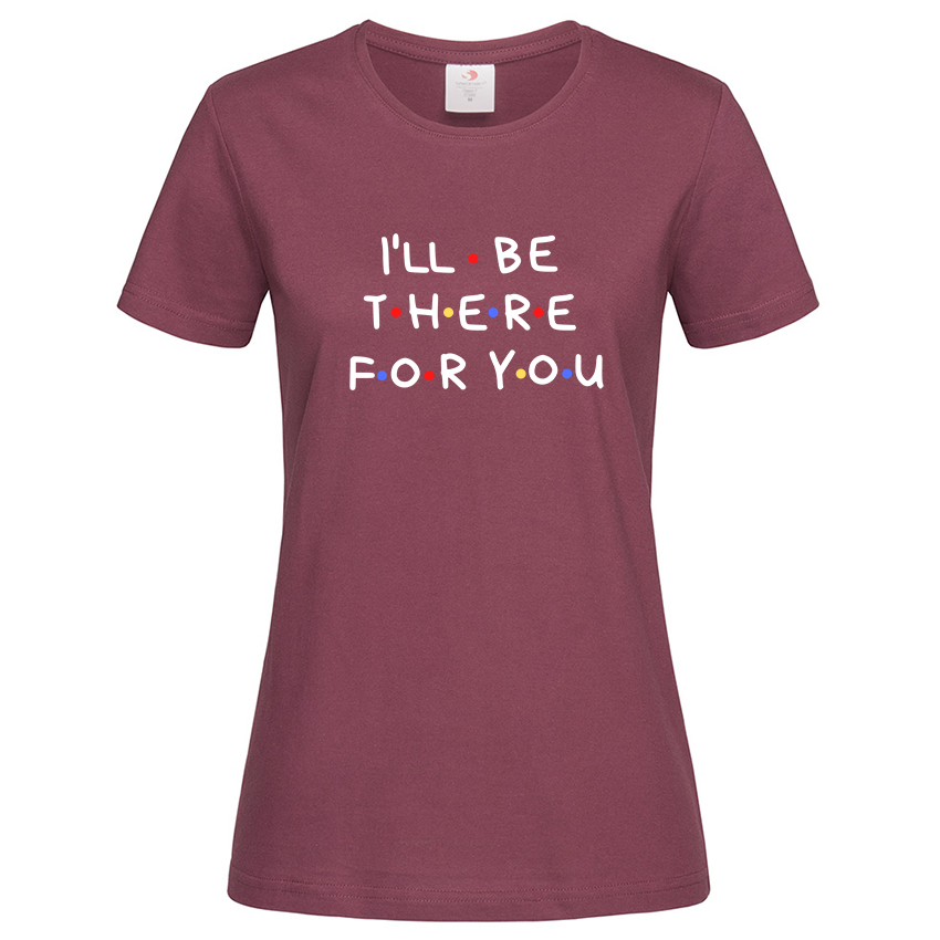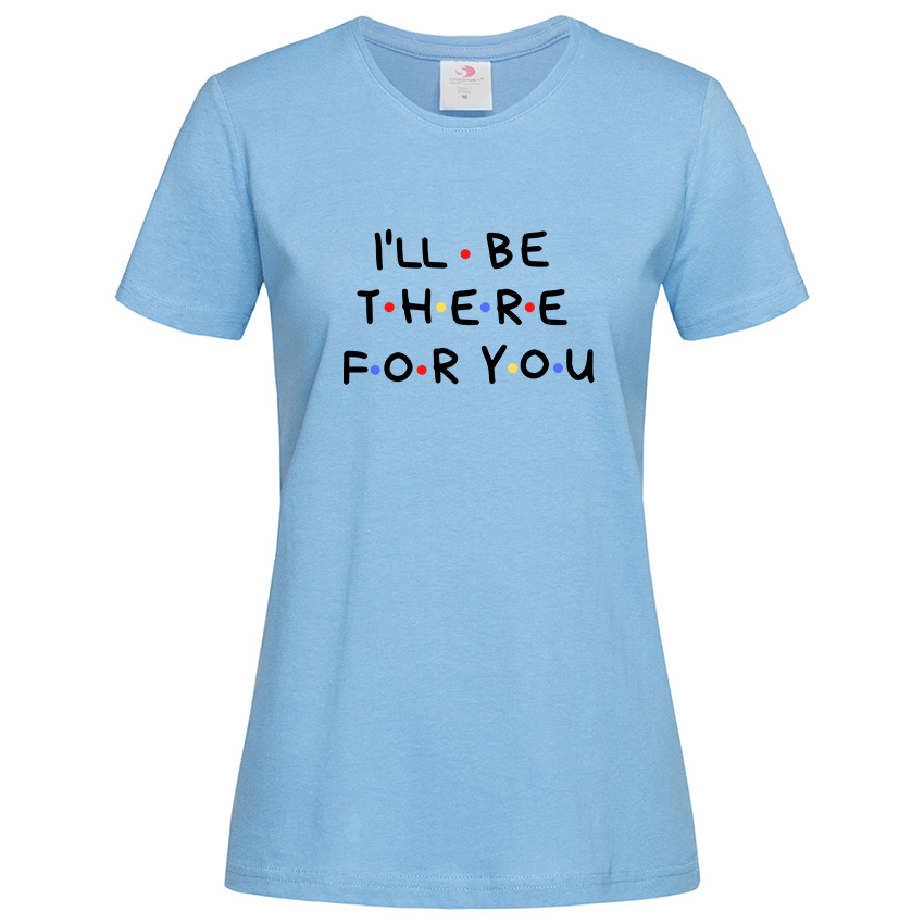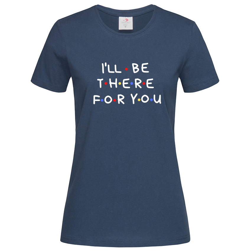 Дамска тениска I’ll Be There For You e тениска с надпис, вдъхновен от сериала “Приятели”, създадена от In a MOOD – Онлайн магазин за тениски с щампи и надписи. Ние сме магазинът за настроение и създаваме дизайни на мъжки и дамски тениски. Стараем се да предлагаме забавни и оригинални дизайни на различни теми. Правим тениски, с които Вие да можете да изразите себе си по уникален начин. Ако имате нужда, можем да създадем и тениска по ваш дизайн. Можем също да променим по Ваше желание елементи в някои от предлаганите в магазина щампи и надписи. За целта само се свържете с нас чрез контактната форма на сайта или на email: info@inamood.bg. Предлагаме също така голямо разнообразие от ярки, светли и тъмни цветове – 17 цвята за мъжките и 17 цвята за дамските модели тениски. На различните дизайни сме поставили различни цветове, които пасват със съответния дизайн, но ако Вие искате друг цвят на тениската, не се колебайте да ни попитате. На ваше разположение сме за всякакви въпроси и информация относно магазина и предлаганите от нас продукти. Имаме една основна цел – да зарадваме и усмихнем колкото се може повече хора!