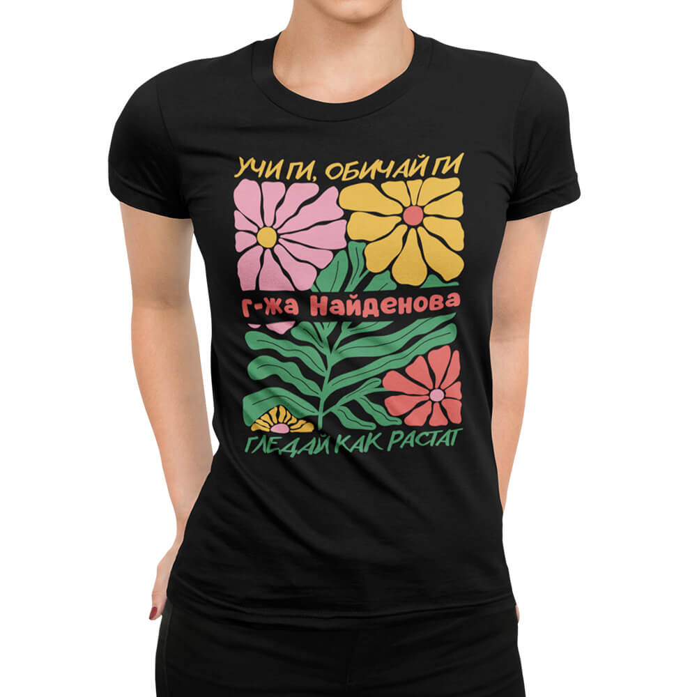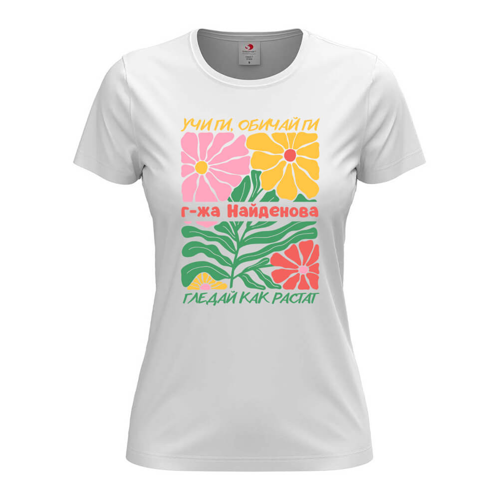 Дамска тениска с щампа и персонализация за “Любим Учител”