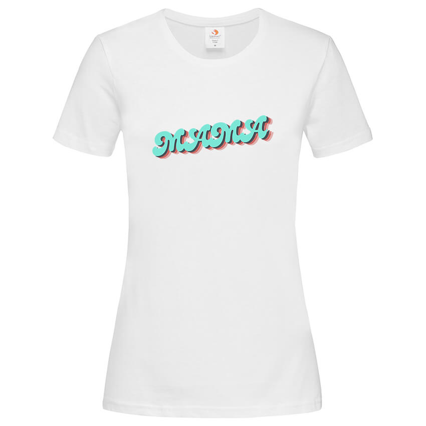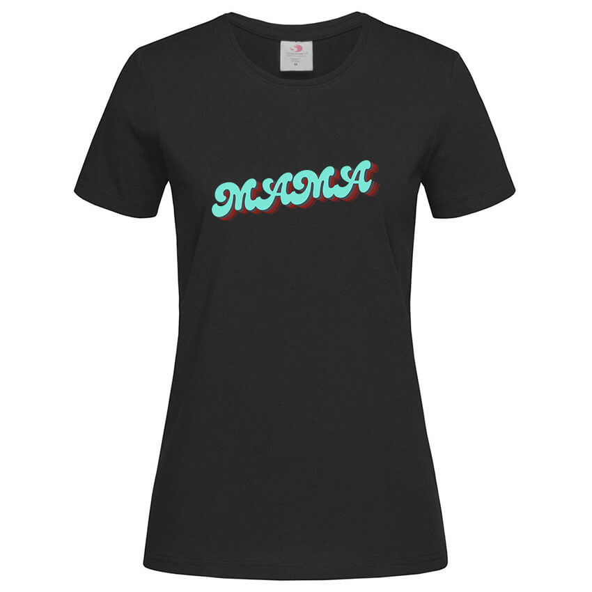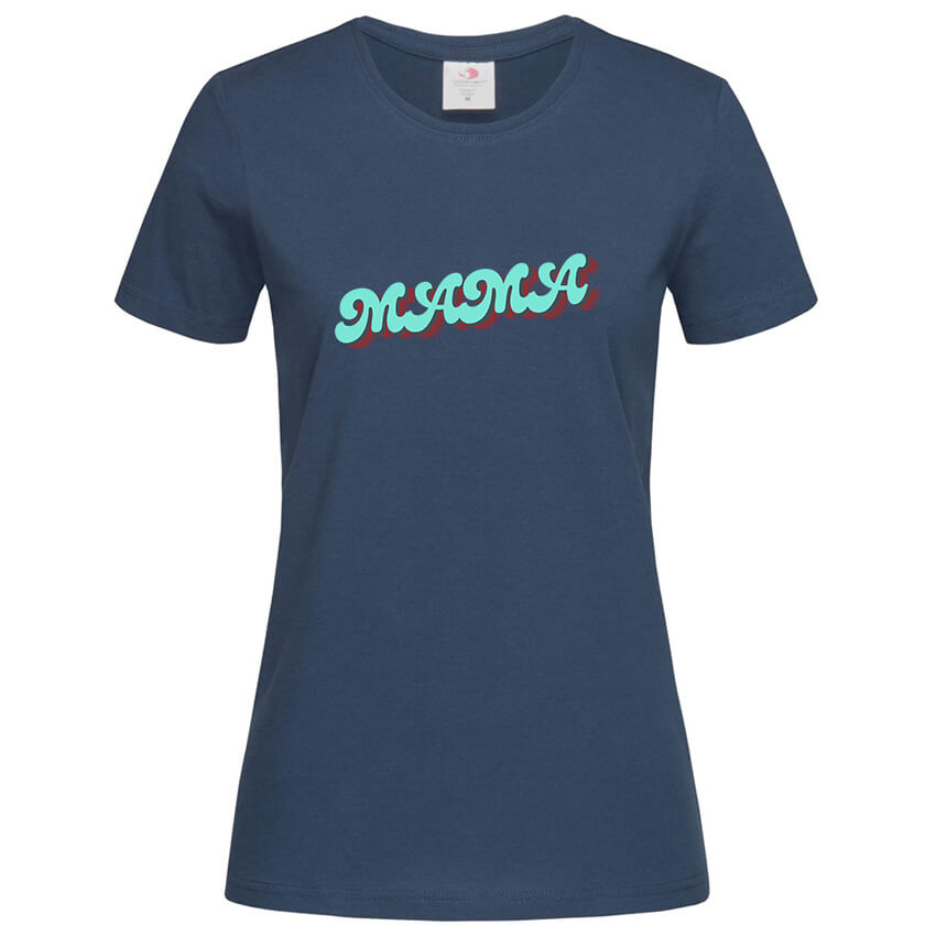Дамска тениска Мама e красива тениска с щампа, създадена от In a MOOD – Онлайн магазин за тениски с щампи и надписи. Ние сме магазинът за настроение и създаваме дизайни на мъжки и дамски тениски и унисекс суичъри. Стараем се да предлагаме забавни и оригинални дизайни на различни теми. Правим тениски, с които Вие да можете да изразите себе си по уникален начин. Ако имате нужда, можем да създадем и тениска по ваш дизайн. Можем също да променим по Ваше желание елементи в някои от предлаганите в магазина щампи и надписи. За целта само се свържете с нас чрез контактната форма на сайта или на email: info@inamood.bg. Предлагаме също така голямо разнообразие от ярки, светли и тъмни цветове – 17 цвята за мъжките и 17 цвята за дамските модели тениски. На различните дизайни сме поставили различни цветове, които пасват със съответния дизайн, но ако Вие искате друг цвят на тениската, не се колебайте да ни попитате. На ваше разположение сме за всякакви въпроси и информация относно магазина и предлаганите от нас продукти. Имаме една основна цел – да зарадваме и усмихнем колкото се може повече хора!