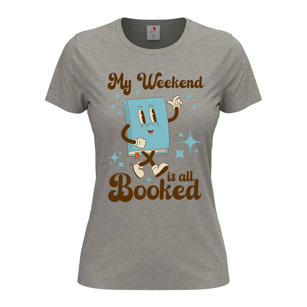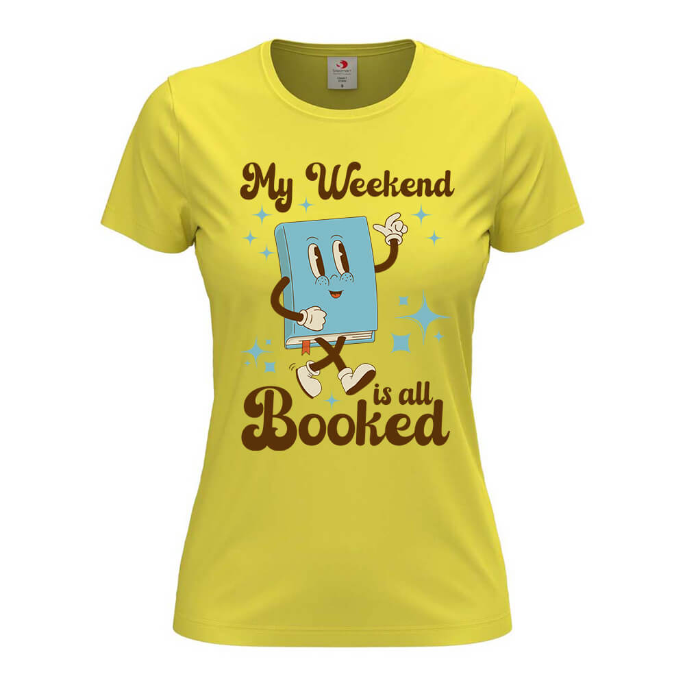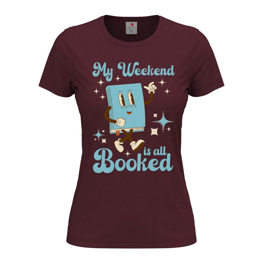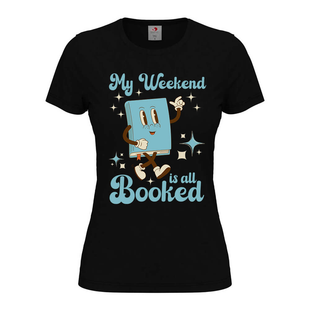 Дамска Тениска My Weekend Is All Booked e тениска с дизайн, създадена от In a MOOD – Онлайн магазин за тениски с щампи и надписи. Ние сме магазинът за настроение и създаваме дизайни на мъжки и дамски тениски. Стараем се да предлагаме забавни и оригинални дизайни на различни теми. Правим тениски, с които Вие да можете да изразите себе си по уникален начин. Ако имате нужда, можем да създадем и тениска по Ваш дизайн. Можем също да променим по Ваше желание елементи в някои от предлаганите в магазина щампи и надписи. За целта само се свържете с нас чрез контактната форма на сайта или на email: info@inamood.bg. Предлагаме също така голямо разнообразие от ярки, светли и тъмни цветове – 17 цвята за мъжките и 17 цвята за дамските модели тениски. На различните дизайни сме поставили различни цветове, които пасват със съответния дизайн, но ако Вие искате друг цвят на тениската, не се колебайте да ни попитате. На Ваше разположение сме за всякакви въпроси и информация относно магазина и предлаганите от нас продукти. Имаме една основна цел – да зарадваме и усмихнем колкото се може повече хора!