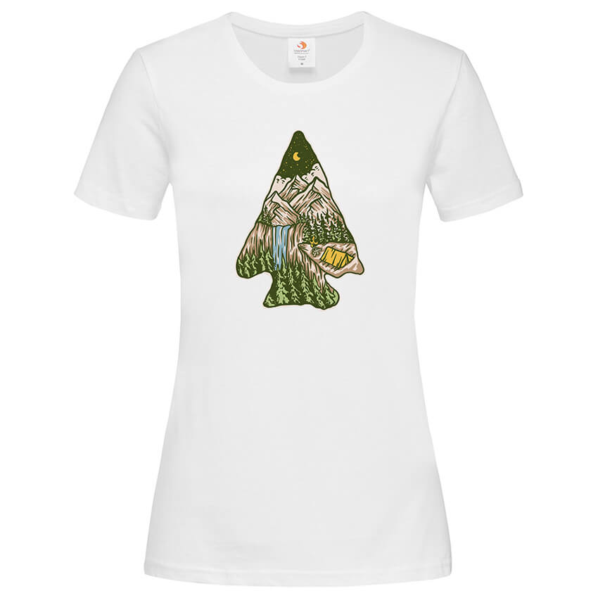 Дамска тениска Под Звездите e тениска с готина и модерна щампа, част от планинарската колекция, създадена от In a MOOD – Онлайн магазин за тениски с щампи и надписи. Ние сме магазинът за настроение и създаваме дизайни на мъжки и дамски тениски. Стараем се да предлагаме забавни и оригинални дизайни на различни теми. Правим тениски, с които Вие да можете да изразите себе си по уникален начин. Ако имате нужда, можем да създадем и тениска по ваш дизайн. Можем също да променим по Ваше желание елементи в някои от предлаганите в магазина щампи и надписи. За целта само се свържете с нас чрез контактната форма на сайта или на email: info@inamood.bg. Предлагаме също така голямо разнообразие от ярки, светли и тъмни цветове – 17 цвята за мъжките и 17 цвята за дамските модели тениски. На различните дизайни сме поставили различни цветове, които пасват със съответния дизайн, но ако Вие искате друг цвят на тениската, не се колебайте да ни попитате. На ваше разположение сме за всякакви въпроси и информация относно магазина и предлаганите от нас продукти. Имаме една основна цел – да зарадваме и усмихнем колкото се може повече хора!