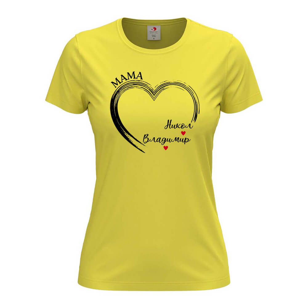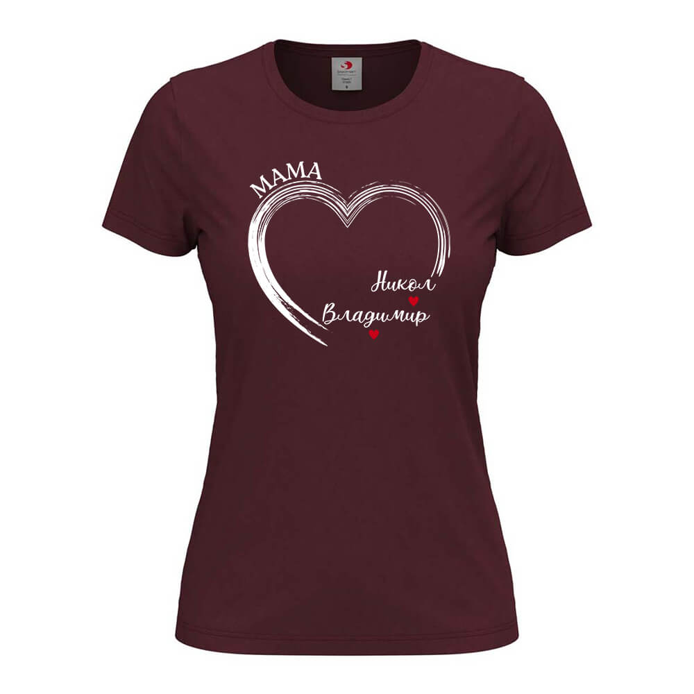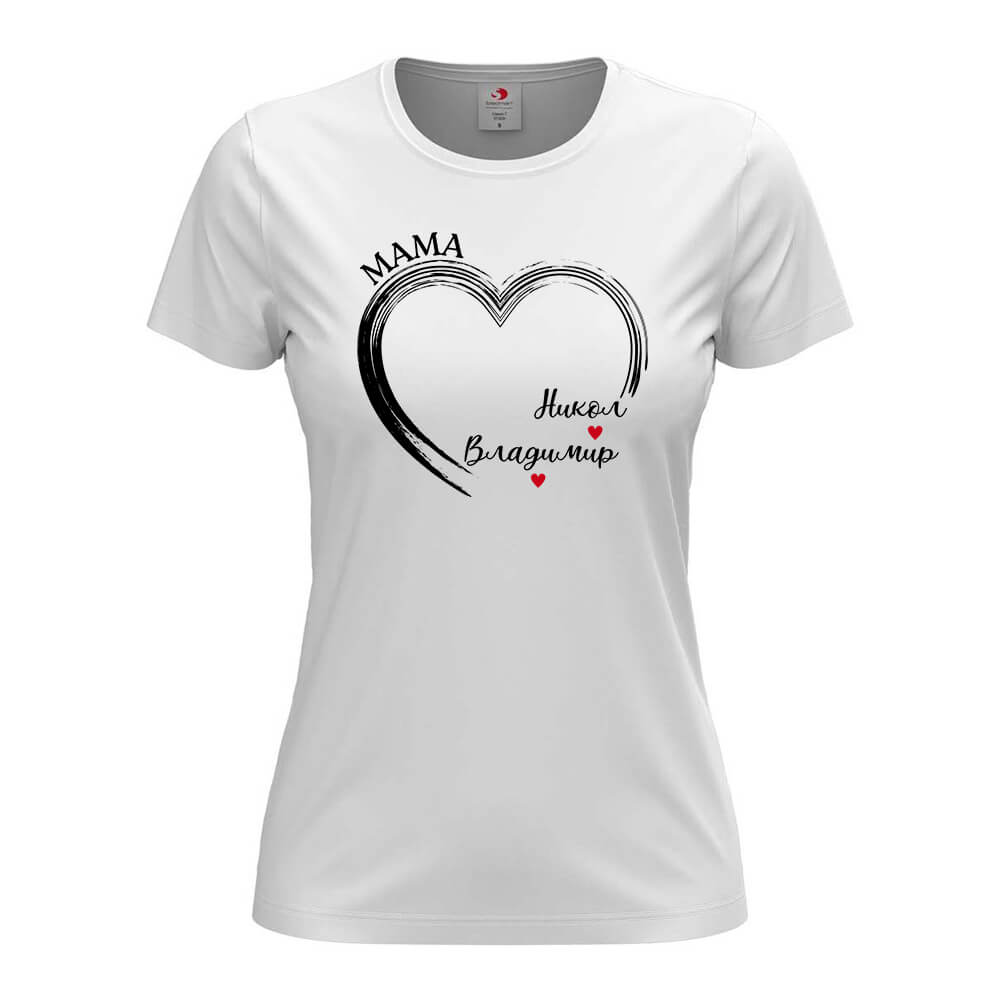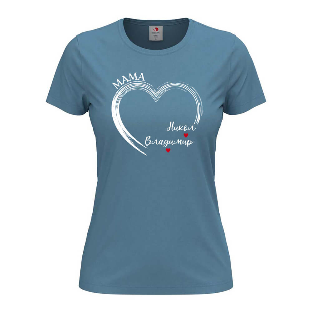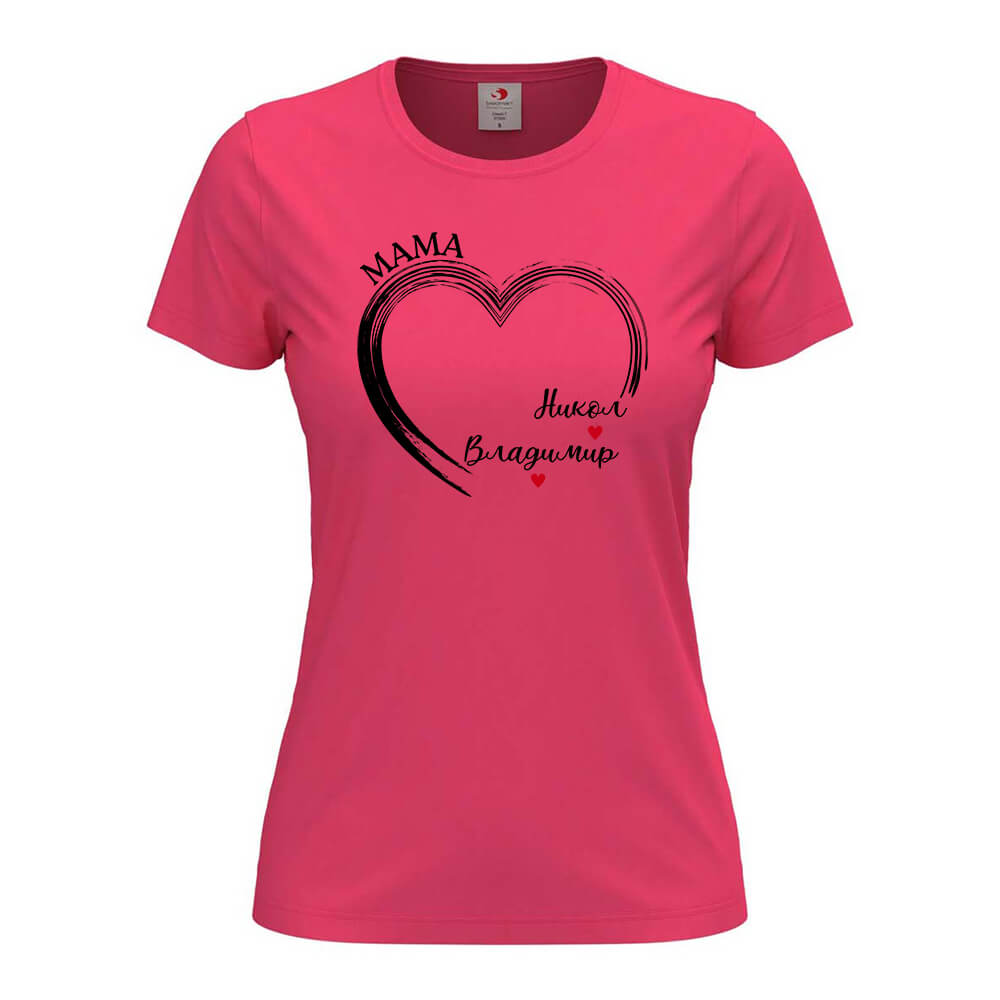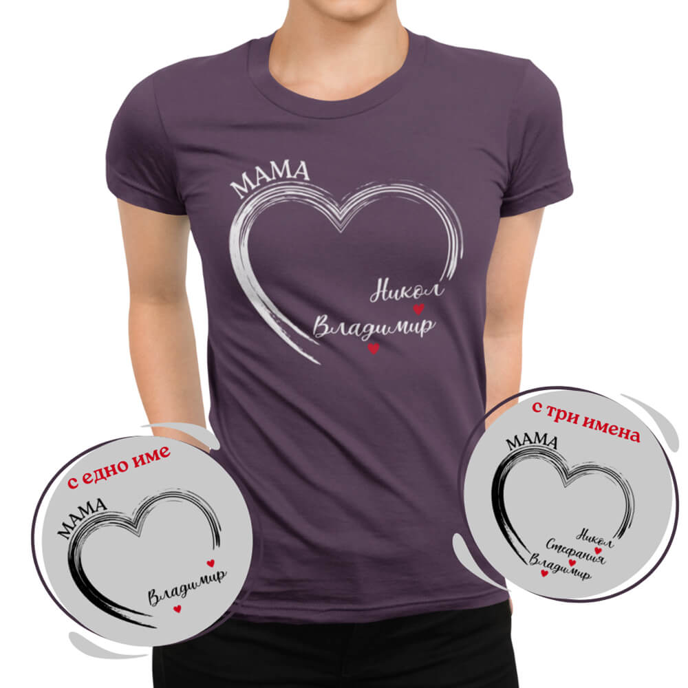 Дамска Тениска Сърцето на Мама e тениска с красив дизайн с персонализация, създадена от In a MOOD – Онлайн магазин за тениски с щампи и надписи. Ние сме магазинът за настроение и създаваме дизайни на мъжки и дамски тениски. Стараем се да предлагаме забавни и оригинални дизайни на различни теми. Правим тениски, с които Вие да можете да изразите себе си по уникален начин. Ако имате нужда, можем да създадем и тениска по Ваш дизайн. Можем също да променим по Ваше желание елементи в някои от предлаганите в магазина щампи и надписи. За целта само се свържете с нас чрез контактната форма на сайта или на email: info@inamood.bg. Предлагаме също така голямо разнообразие от ярки, светли и тъмни цветове – 17 цвята за мъжките и 17 цвята за дамските модели тениски. На различните дизайни сме поставили различни цветове, които пасват със съответния дизайн, но ако Вие искате друг цвят на тениската, не се колебайте да ни попитате. На Ваше разположение сме за всякакви въпроси и информация относно магазина и предлаганите от нас продукти. Имаме една основна цел – да зарадваме и усмихнем колкото се може повече хора!