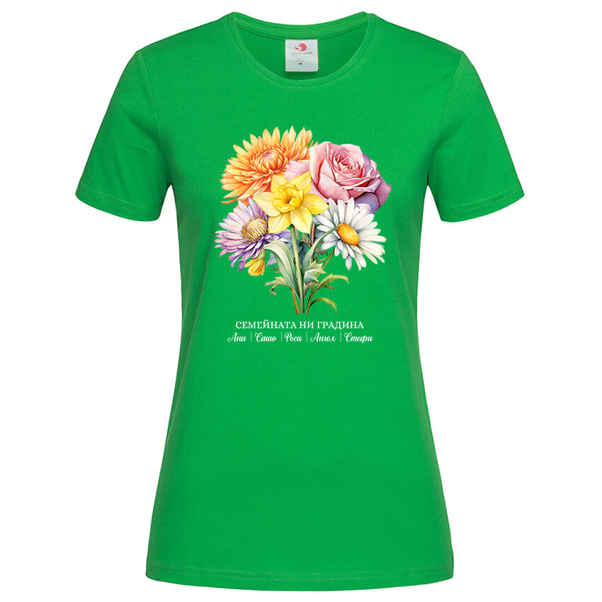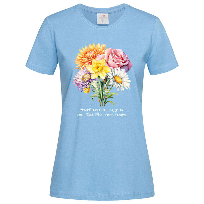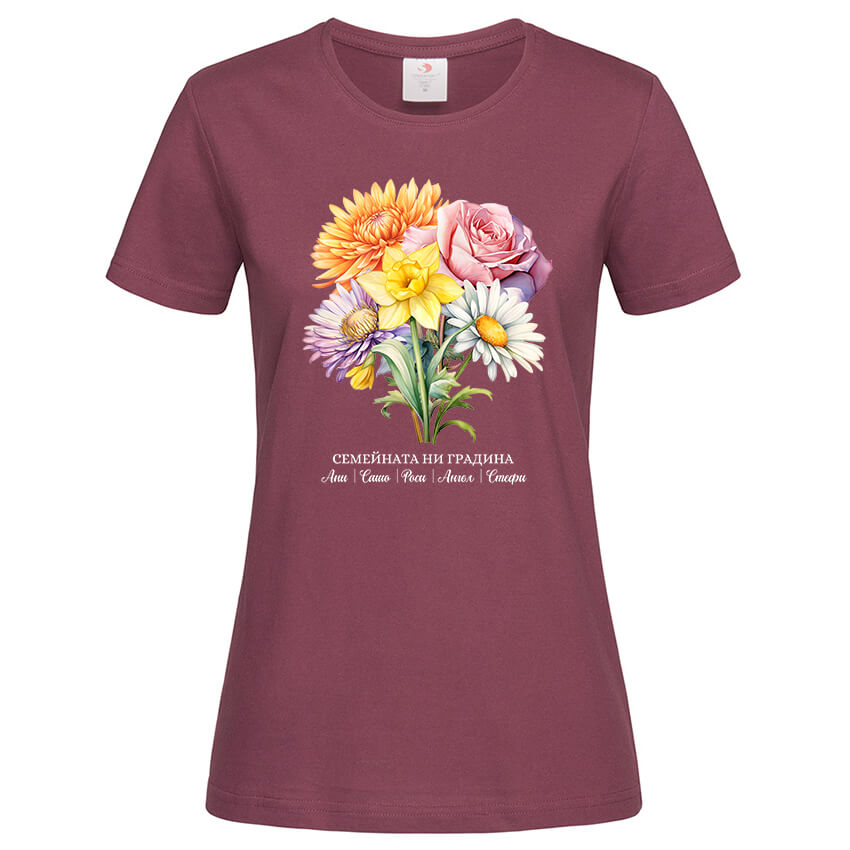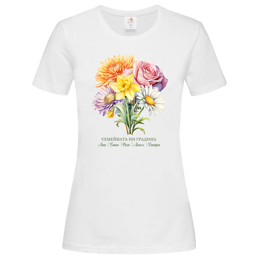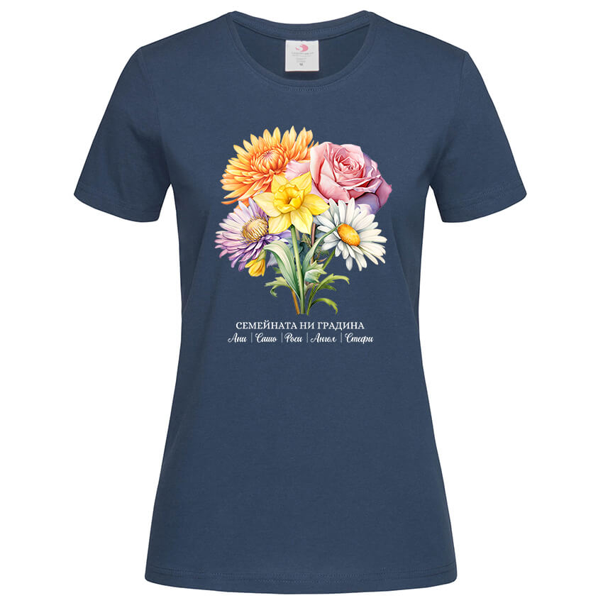 Дамска Тениска Семейната ни Градина e тениска с уникален дизайн с цветя, които отговарят на рождения месец на всеки член от семейството, създадена от In a MOOD – Онлайн магазин за тениски с щампи и надписи. Ние сме магазинът за настроение и създаваме дизайни на мъжки и дамски тениски. Стараем се да предлагаме забавни и оригинални дизайни на различни теми. Правим тениски, с които Вие да можете да изразите себе си по уникален начин. Ако имате нужда, можем да създадем и тениска по ваш дизайн. Можем също да променим по Ваше желание елементи в някои от предлаганите в магазина щампи и надписи. За целта само се свържете с нас чрез контактната форма на сайта или на email: info@inamood.bg. Предлагаме също така голямо разнообразие от ярки, светли и тъмни цветове – 17 цвята за мъжките и 17 цвята за дамските модели тениски. На различните дизайни сме поставили различни цветове, които пасват със съответния дизайн, но ако Вие искате друг цвят на тениската, не се колебайте да ни попитате. На ваше разположение сме за всякакви въпроси и информация относно магазина и предлаганите от нас продукти. Имаме една основна цел – да зарадваме и усмихнем колкото се може повече хора!