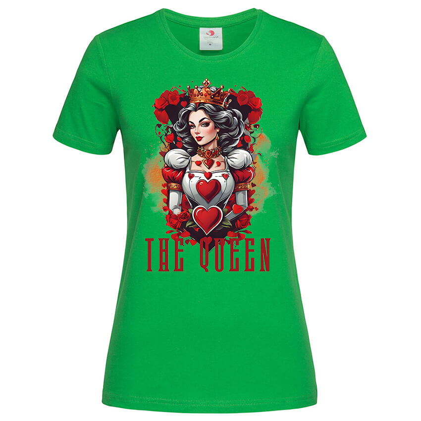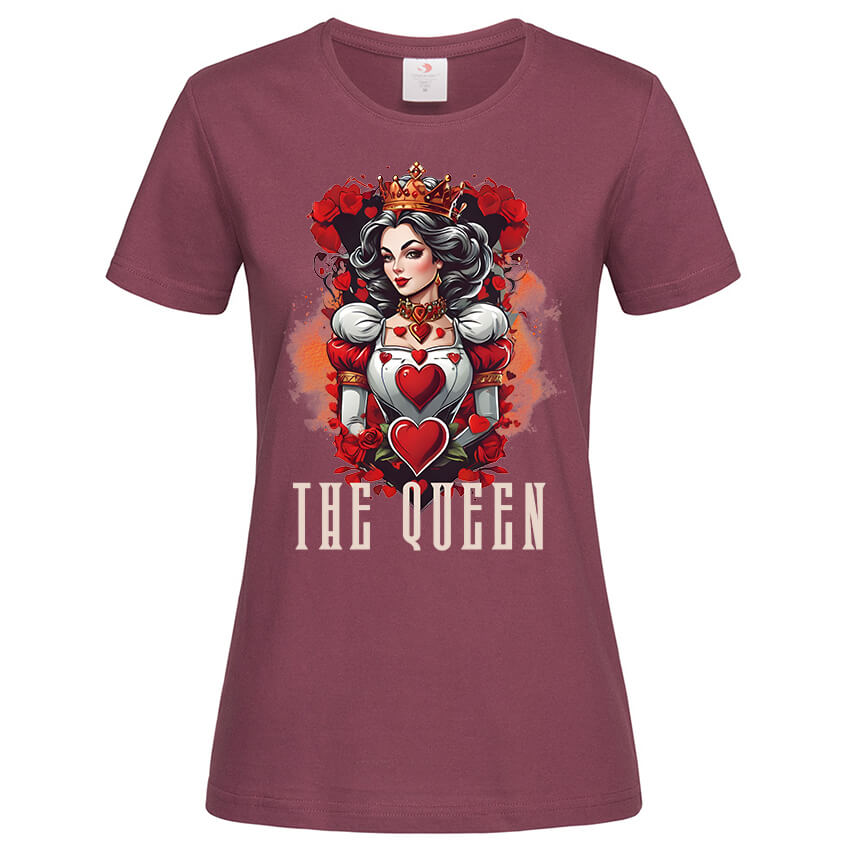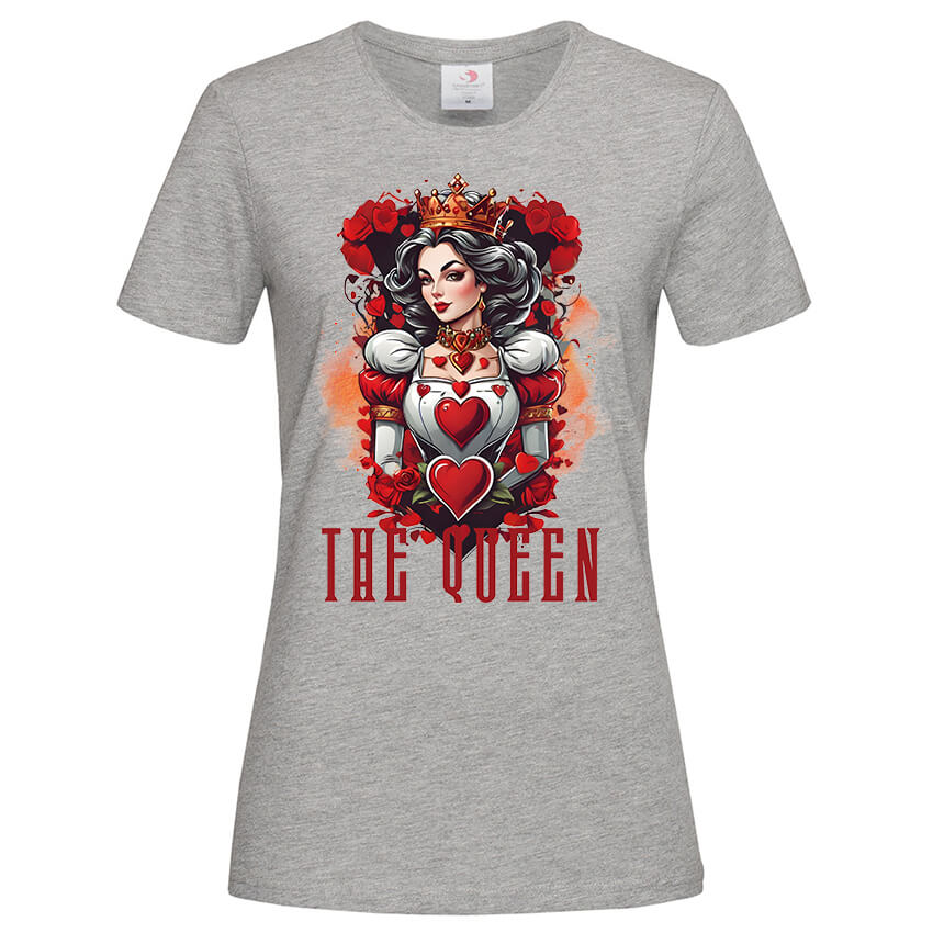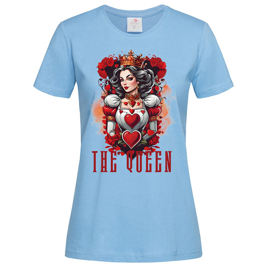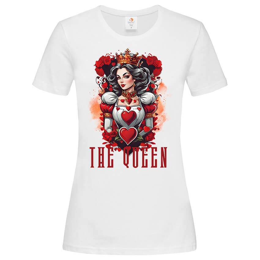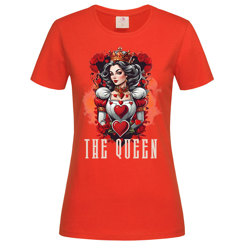 Дамска Тениска The Queen e тениска със забавен дизайн за Свети Валентин, създадена от In a MOOD – Онлайн магазин за тениски с щампи и надписи. Ние сме магазинът за настроение и създаваме дизайни на мъжки и дамски тениски. Стараем се да предлагаме забавни и оригинални дизайни на различни теми. Правим тениски, с които Вие да можете да изразите себе си по уникален начин. Ако имате нужда, можем да създадем и тениска по ваш дизайн. Можем също да променим по Ваше желание елементи в някои от предлаганите в магазина щампи и надписи. За целта само се свържете с нас чрез контактната форма на сайта или на email: info@inamood.bg. Предлагаме също така голямо разнообразие от ярки, светли и тъмни цветове – 17 цвята за мъжките и 17 цвята за дамските модели тениски. На различните дизайни сме поставили различни цветове, които пасват със съответния дизайн, но ако Вие искате друг цвят на тениската, не се колебайте да ни попитате. На ваше разположение сме за всякакви въпроси и информация относно магазина и предлаганите от нас продукти. Имаме една основна цел – да зарадваме и усмихнем колкото се може повече хора!