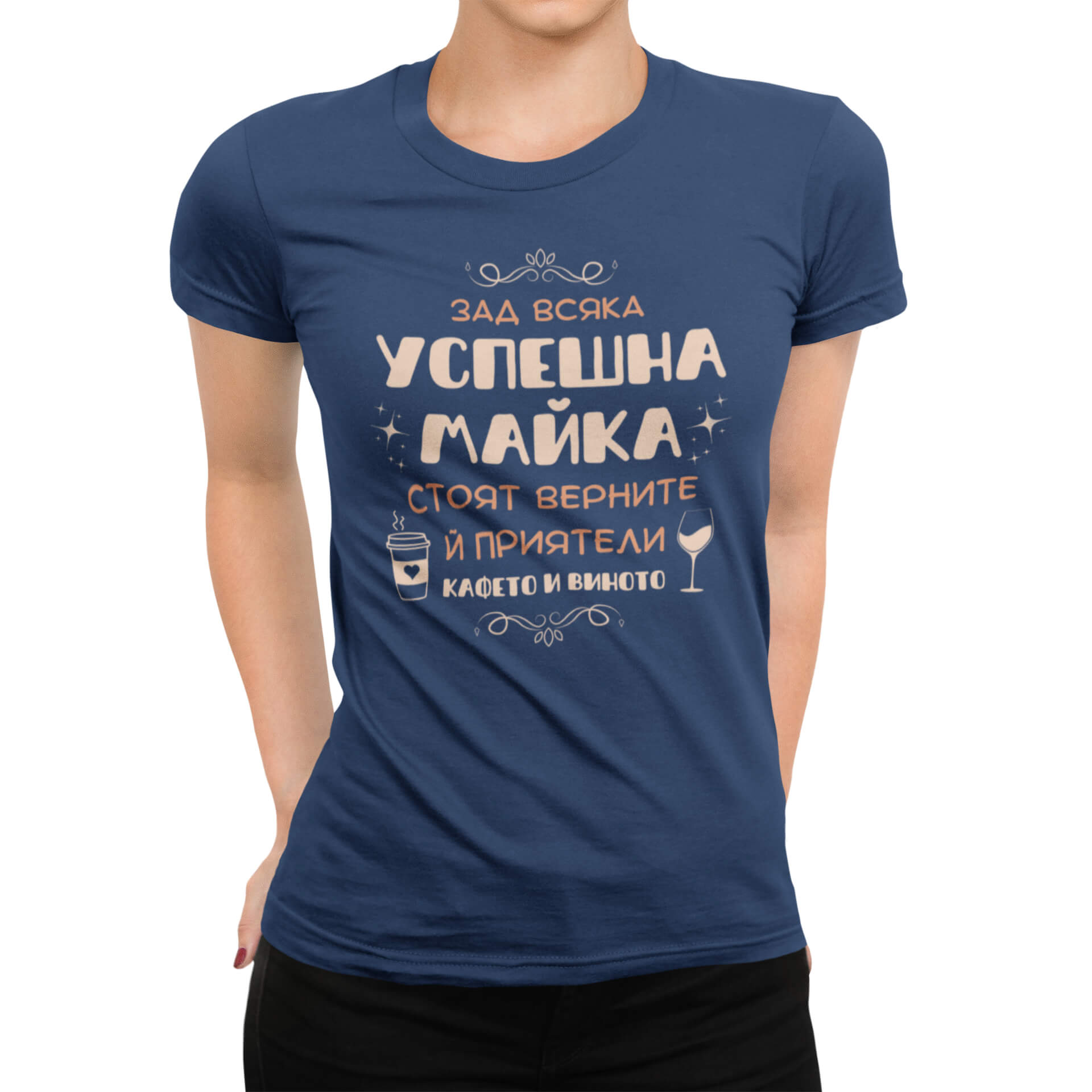 Дамска Тениска Успешна Майка e тениска с дизайн, създадена от In a MOOD – Онлайн магазин за тениски с щампи и надписи. Ние сме магазинът за настроение и създаваме дизайни на мъжки и дамски тениски. Стараем се да предлагаме забавни и оригинални дизайни на различни теми. Правим тениски, с които Вие да можете да изразите себе си по уникален начин. Ако имате нужда, можем да създадем и тениска по Ваш дизайн. Можем също да променим по Ваше желание елементи в някои от предлаганите в магазина щампи и надписи. За целта само се свържете с нас чрез контактната форма на сайта или на email: info@inamood.bg. Предлагаме също така голямо разнообразие от ярки, светли и тъмни цветове – 17 цвята за мъжките и 17 цвята за дамските модели тениски. На различните дизайни сме поставили различни цветове, които пасват със съответния дизайн, но ако Вие искате друг цвят на тениската, не се колебайте да ни попитате. На Ваше разположение сме за всякакви въпроси и информация относно магазина и предлаганите от нас продукти. Имаме една основна цел – да зарадваме и усмихнем колкото се може повече хора!