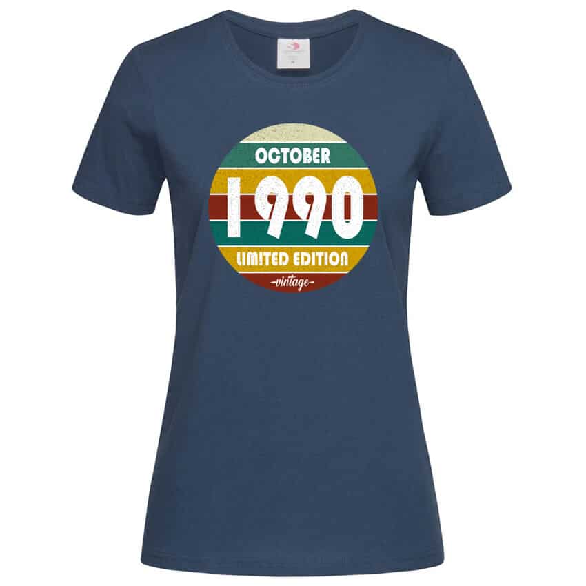 Дамска тениска Vintage Birthday e тениска за рожден ден с ретро дизайн, създадена от In a MOOD – Онлайн магазин за тениски с щампи и надписи. Ние сме магазинът за настроение и създаваме дизайни на мъжки и дамски тениски. Стараем се да предлагаме забавни и оригинални дизайни на различни теми. Правим тениски, с които Вие да можете да изразите себе си по уникален начин. Ако имате нужда, можем да създадем и тениска по ваш дизайн. Можем също да променим по Ваше желание елементи в някои от предлаганите в магазина щампи и надписи. За целта само се свържете с нас чрез контактната форма на сайта или на email: info@inamood.bg. Предлагаме също така голямо разнообразие от ярки, светли и тъмни цветове – 17 цвята за мъжките и 17 цвята за дамските модели тениски. На различните дизайни сме поставили различни цветове, които пасват със съответния дизайн, но ако Вие искате друг цвят на тениската, не се колебайте да ни попитате. На ваше разположение сме за всякакви въпроси и информация относно магазина и предлаганите от нас продукти. Имаме една основна цел – да зарадваме и усмихне колкото се може повече хора!