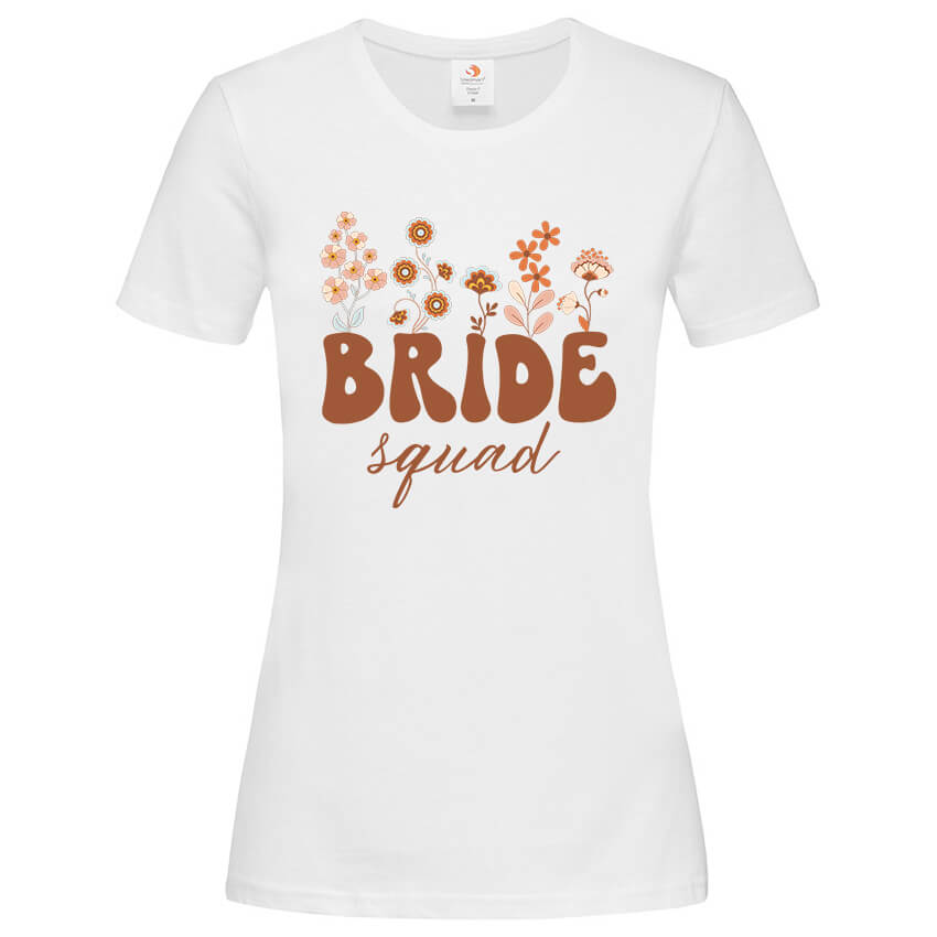 Дамска Тениска Vintage Bride Squad e част от колекцията Тениски за Моминско Парти с дизайн, който няма да намериш другаде, създаден от In a MOOD – Онлайн магазин за тениски с щампи и надписи. Ние сме магазинът за настроение и създаваме дизайни на мъжки и дамски тениски. Стараем се да предлагаме забавни и оригинални дизайни на различни теми. Правим тениски, с които Вие да можете да изразите себе си по уникален начин. Ако имате нужда, можем да създадем и тениска по Ваш дизайн. Можем също да променим по Ваше желание елементи в някои от предлаганите в магазина щампи и надписи. За целта само се свържете с нас чрез контактната форма на сайта или на email: info@inamood.bg. Предлагаме също така голямо разнообразие от ярки, светли и тъмни цветове – 17 цвята за мъжките и 17 цвята за дамските модели тениски. На различните дизайни сме поставили различни цветове, които пасват със съответния дизайн, но ако Вие искате друг цвят на тениската, не се колебайте да ни попитате. На Ваше разположение сме за всякакви въпроси и информация относно магазина и предлаганите от нас продукти. Имаме една основна цел – да зарадваме и усмихнем колкото се може повече хора!