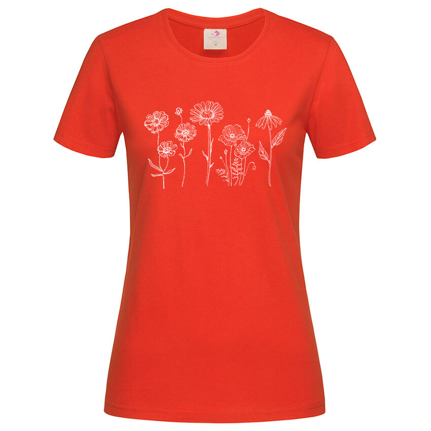 Дамска Тениска Wildflowers Miminalista e тениска с уникален дизайн от колекцията тениски с цветя, чудесно допълнение към твоят аутфит, създадена от In a MOOD – Онлайн магазин за тениски с щампи и надписи. Ние сме магазинът за настроение и създаваме дизайни на мъжки и дамски тениски. Стараем се да предлагаме забавни и оригинални дизайни на различни теми. Правим тениски, с които Вие да можете да изразите себе си по уникален начин. Ако имате нужда, можем да създадем и тениска по ваш дизайн. Можем също да променим по Ваше желание елементи в някои от предлаганите в магазина щампи и надписи. За целта само се свържете с нас чрез контактната форма на сайта или на email: info@inamood.bg. Предлагаме също така голямо разнообразие от ярки, светли и тъмни цветове – 17 цвята за мъжките и 17 цвята за дамските модели тениски. На различните дизайни сме поставили различни цветове, които пасват със съответния дизайн, но ако Вие искате друг цвят на тениската, не се колебайте да ни попитате. На ваше разположение сме за всякакви въпроси и информация относно магазина и предлаганите от нас продукти. Имаме една основна цел – да зарадваме и усмихнем колкото се може повече хора!