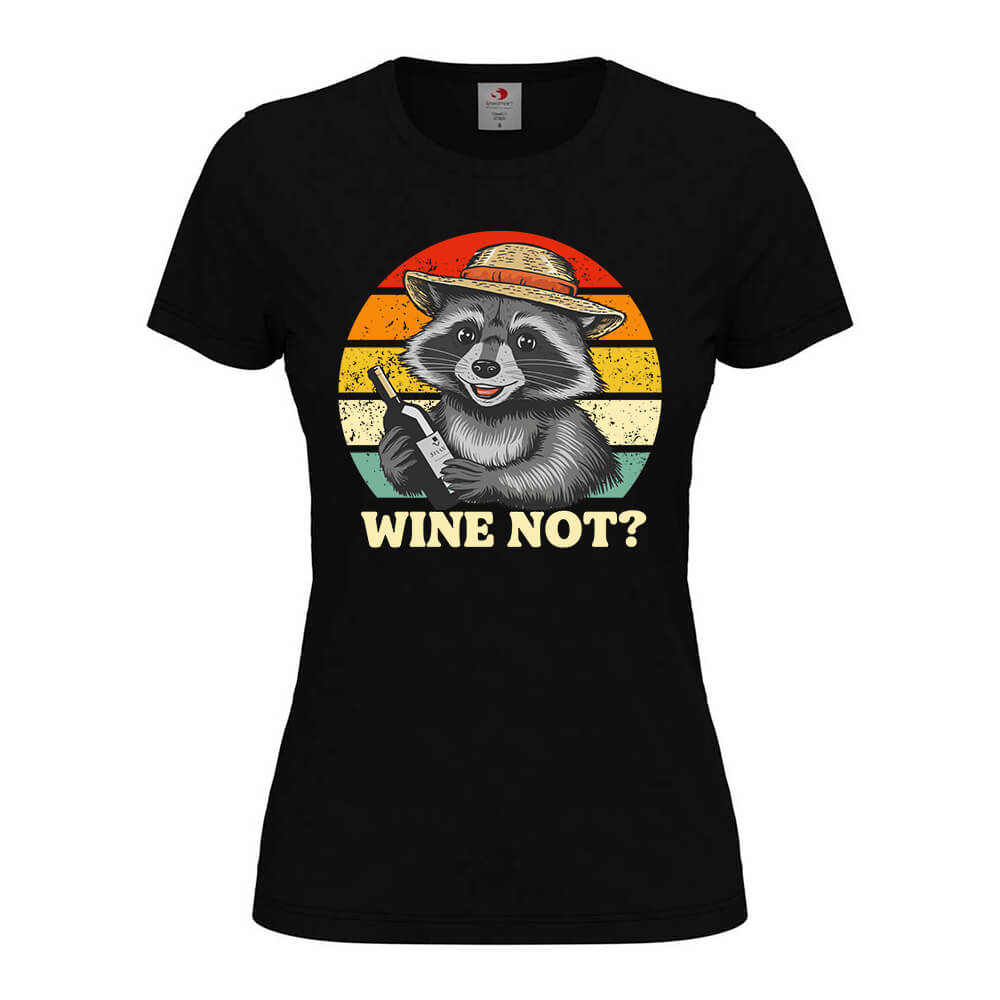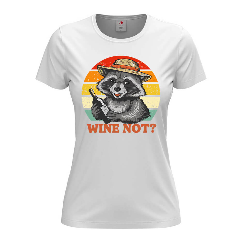 Забавна дамска тениска с принт Wine Not? За моментите, когато ти трябва една чаша вино.