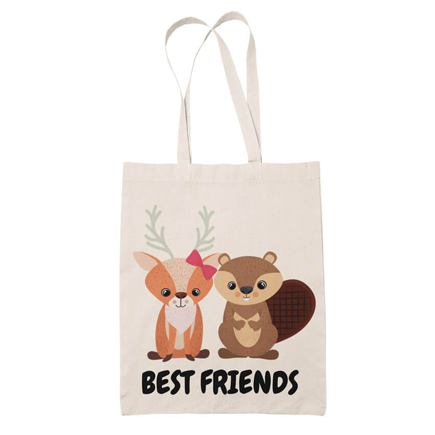 Разгледайте нашата страхотна колекция от симпатични памучни торбички с красиви и ярки щампи, част от които е Еко чанта Best Friends Еленче и Бобър.