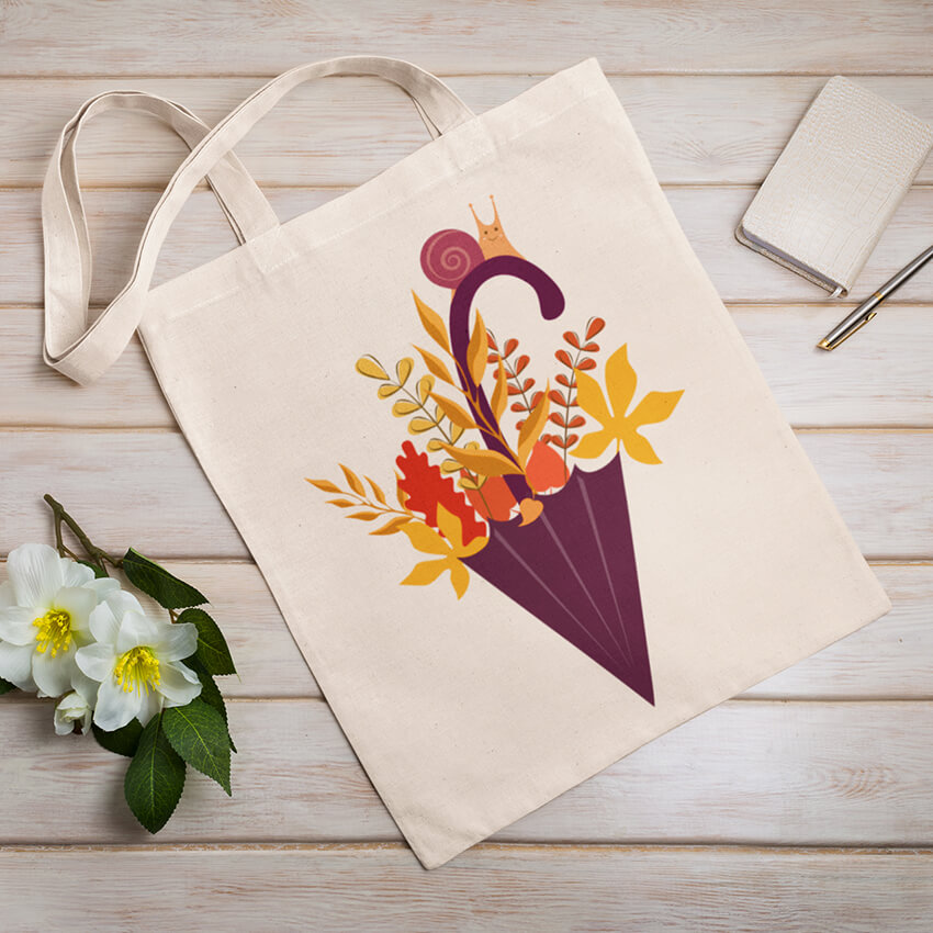 Разгледайте нашата страхотна колекция от симпатични памучни торбички с красиви и ярки щампи, част от които е еко чанта Чадърче.