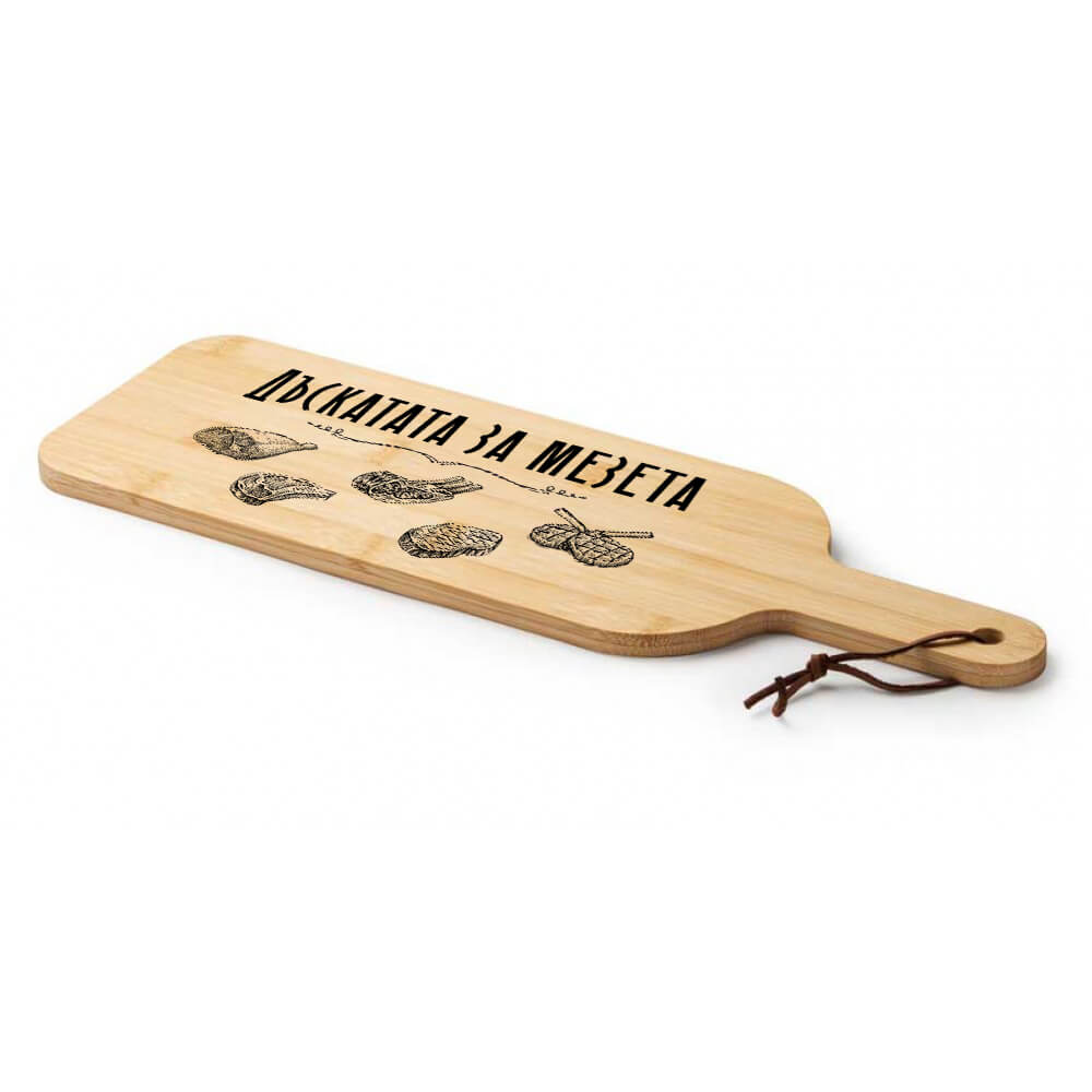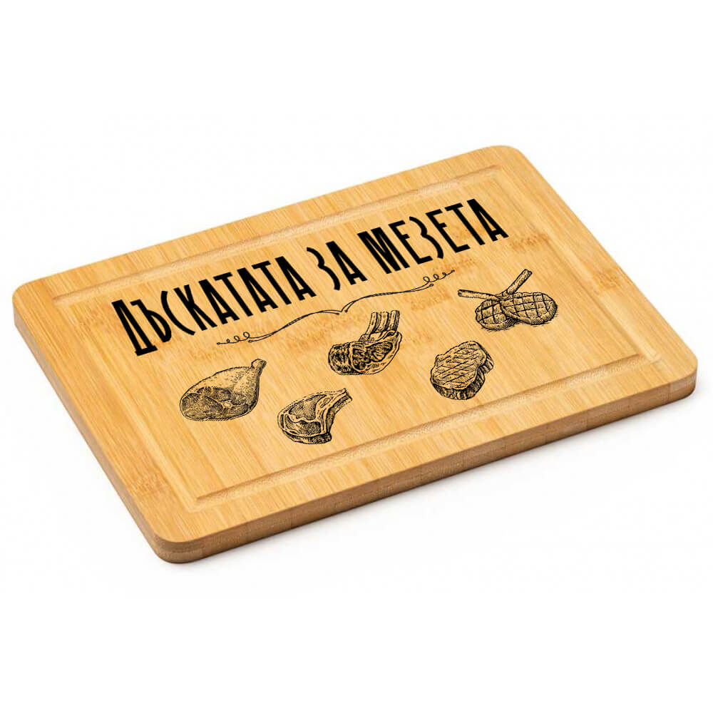 Изработена от естествен бамбук в правоъгълна форма със заоблени ъгли и със специално оформени улеи за течности, тя е подходяща както за рязане, така и за сервиране. Може да я ползваш като забележителна дъска за мезета, когато ти дойдат гости. А ако търсиш гравирана дъска за подарък, тук си на точното място – майки, татковци, приятелки, половинки – можем да направим по нещичко за всеки. Ако не намираш точния дизайн, не се колебай да се свържеш с нас през чат, телефон, мейл >> Информация за контакт.