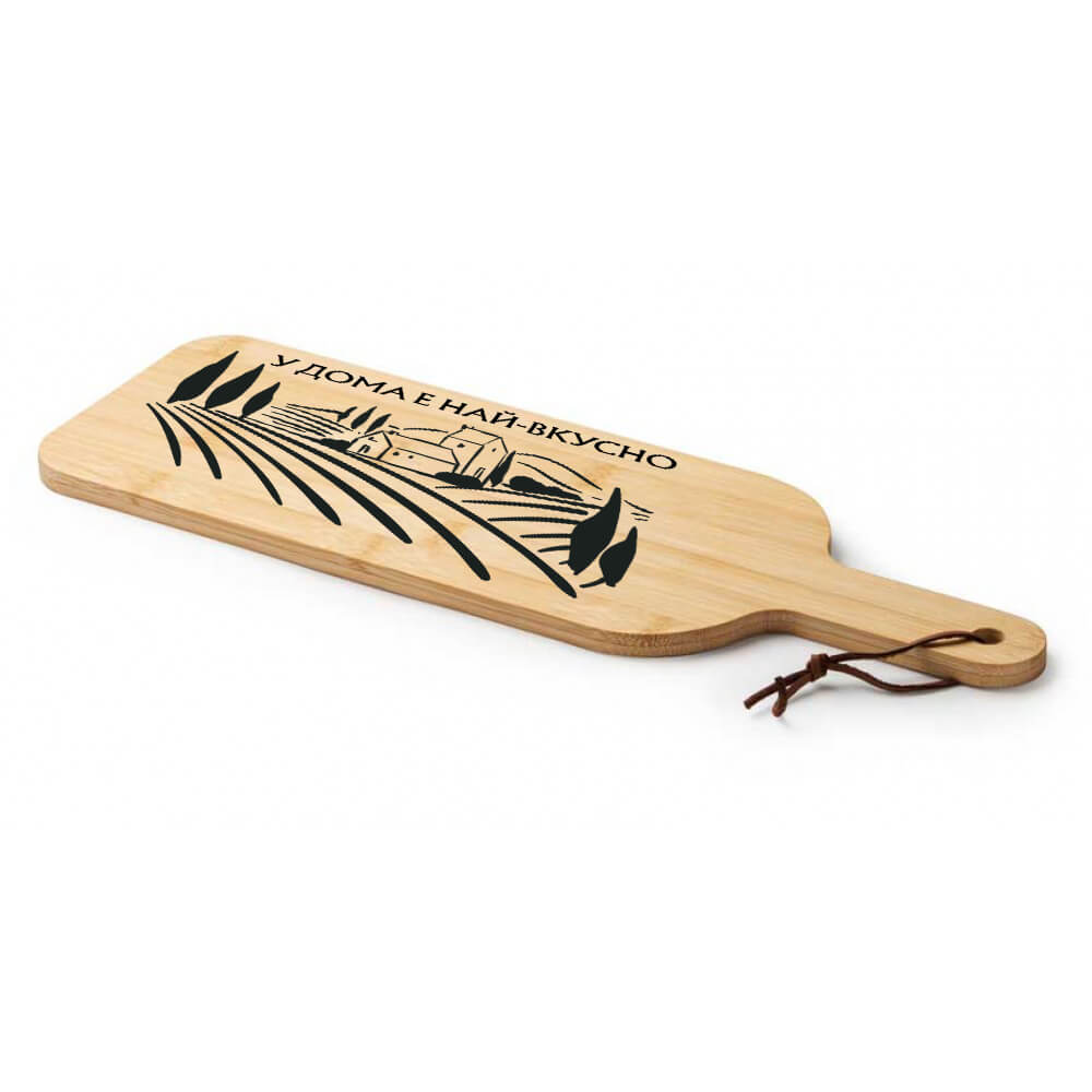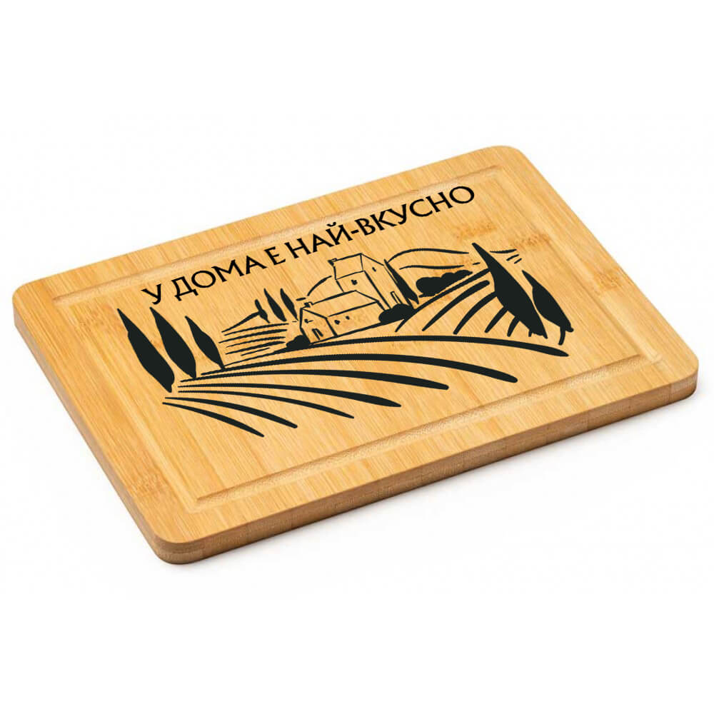 Изработена от естествен бамбук в правоъгълна форма със заоблени ъгли и със специално оформени улеи за течности, тя е подходяща както за рязане, така и за сервиране. Може да я ползваш като забележителна дъска за мезета, когато ти дойдат гости. А ако търсиш гравирана дъска за подарък, тук си на точното място – майки, татковци, приятелки, половинки – можем да направим по нещичко за всеки. Ако не намираш точния дизайн, не се колебай да се свържеш с нас през чат, телефон, мейл >> Информация за контакт.