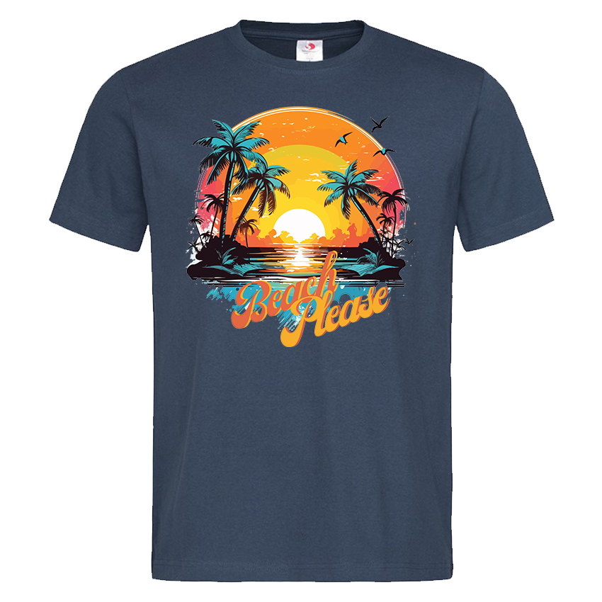Мъжка Тениска Beach Please e тениска с готина щампа, идеална за лятната почивка, създадена от In a MOOD – Онлайн магазин за тениски с щампи и надписи. Ние сме магазинът за настроение и създаваме дизайни на мъжки и дамски тениски. Стараем се да предлагаме забавни и оригинални дизайни на различни теми. Правим тениски, с които Вие да можете да изразите себе си по уникален начин. Ако имате нужда, можем да създадем и тениска по ваш дизайн. Можем също да променим по Ваше желание елементи в някои от предлаганите в магазина щампи и надписи. За целта само се свържете с нас чрез контактната форма на сайта или на email: info@inamood.bg.