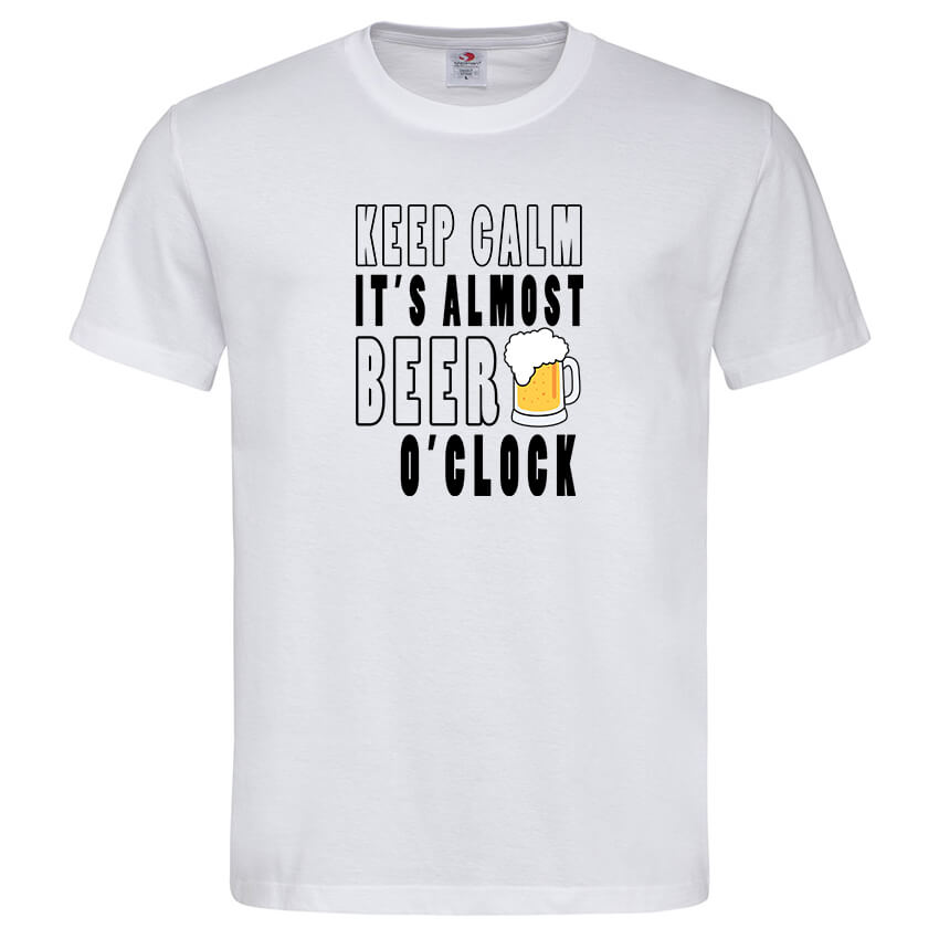 Мъжка тениска Beer O’clock e тениска с готин надпис, създадена от In a MOOD – Онлайн магазин за тениски с щампи и надписи. Ние сме магазинът за настроение и създаваме дизайни на мъжки и дамски тениски и суичъри. Стараем се да предлагаме забавни и оригинални дизайни на различни теми. Правим тениски, с които Вие да можете да изразите себе си по уникален начин. Ако имате нужда, можем да създадем и тениска по ваш дизайн. Можем също да променим по Ваше желание елементи в някои от предлаганите в магазина щампи и надписи. За целта само се свържете с нас чрез контактната форма на сайта или на email: info@inamood.bg. Предлагаме също така голямо разнообразие от ярки, светли и тъмни цветове – 17 цвята за мъжките и 17 цвята за дамските модели тениски. На различните дизайни сме поставили различни цветове, които пасват със съответния дизайн, но ако Вие искате друг цвят на тениската, не се колебайте да ни попитате. На ваше разположение сме за всякакви въпроси и информация относно магазина и предлаганите от нас продукти. Имаме една основна цел – да зарадваме и усмихнем колкото се може повече хора!