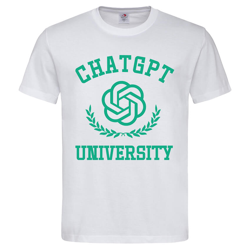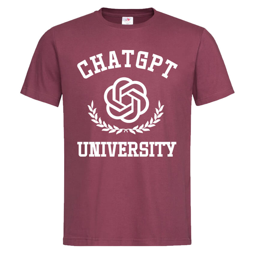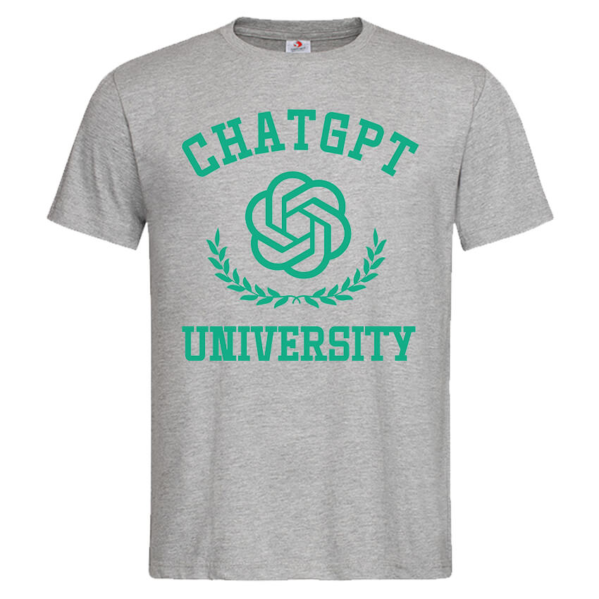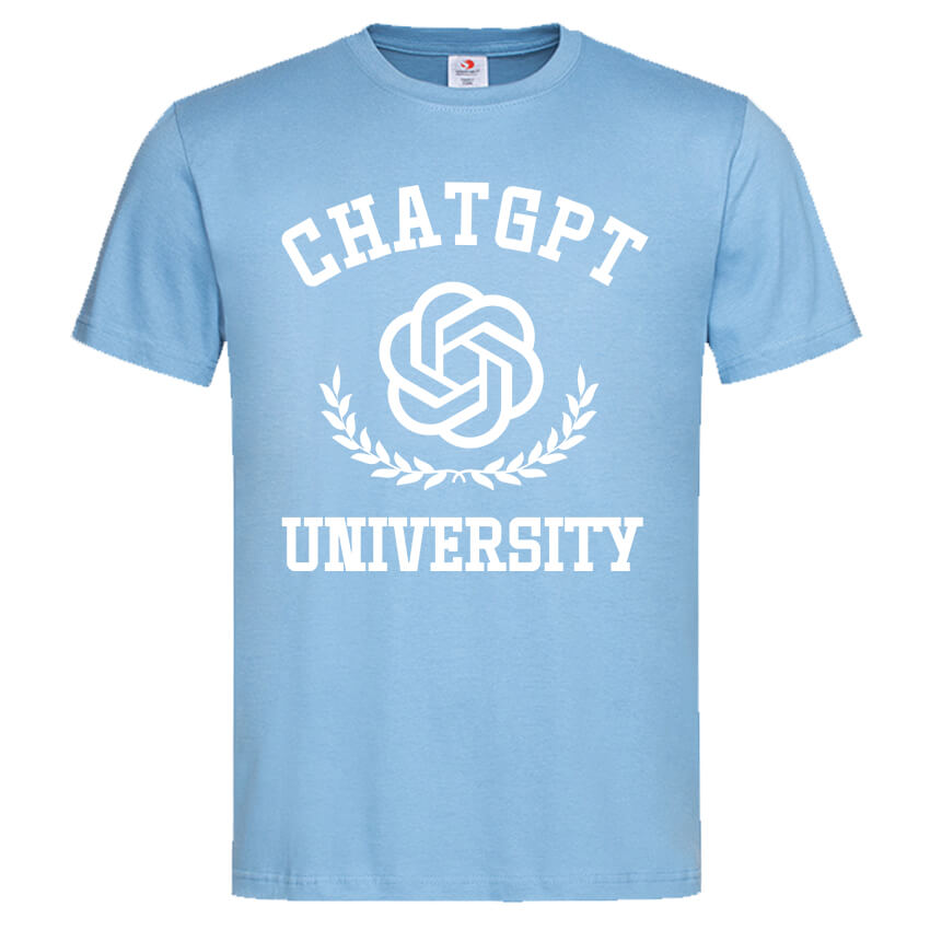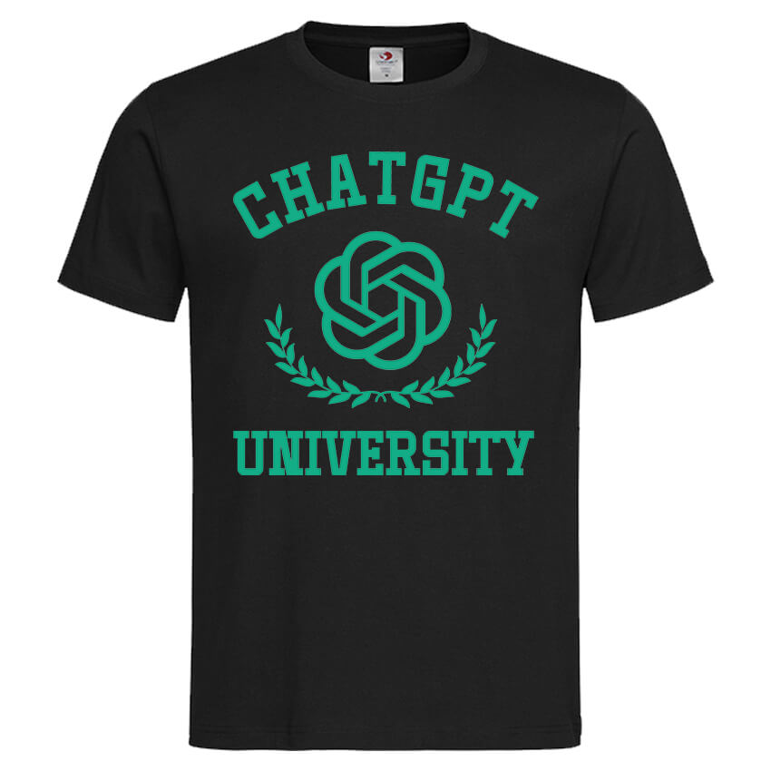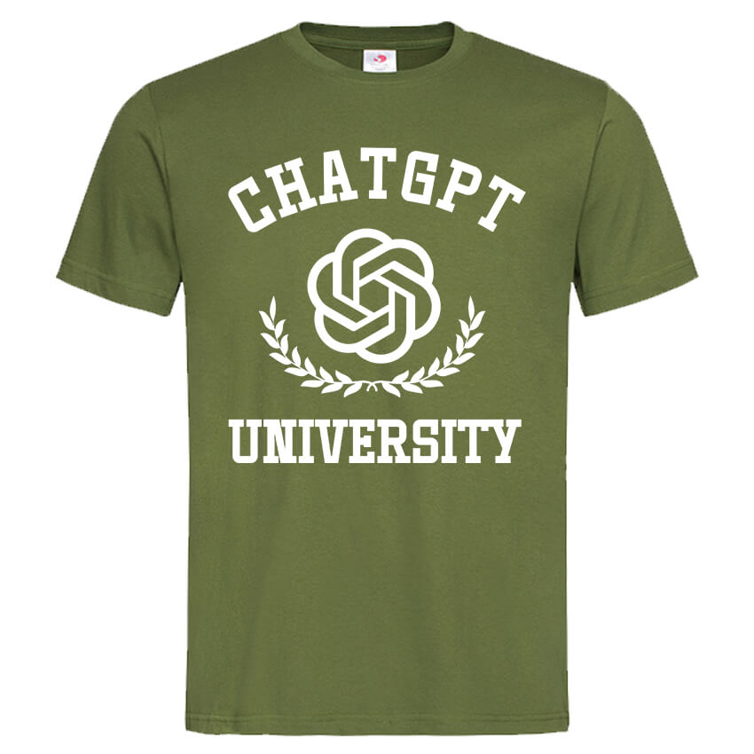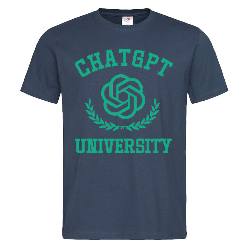 Мъжка Тениска ChatGPT University e тениска със забавен дизайн, създадена от In a MOOD – Онлайн магазин за тениски с щампи и надписи. Ние сме магазинът за настроение и създаваме дизайни на мъжки и дамски тениски. Стараем се да предлагаме забавни и оригинални дизайни на различни теми. Правим тениски, с които Вие да можете да изразите себе си по уникален начин. Ако имате нужда, можем да създадем и тениска по ваш дизайн. Можем също да променим по Ваше желание елементи в някои от предлаганите в магазина щампи и надписи. За целта само се свържете с нас чрез контактната форма на сайта или на email: info@inamood.bg. Предлагаме също така голямо разнообразие от ярки, светли и тъмни цветове – 17 цвята за мъжките и 17 цвята за дамските модели тениски. На различните дизайни сме поставили различни цветове, които пасват със съответния дизайн, но ако Вие искате друг цвят на тениската, не се колебайте да ни попитате. На ваше разположение сме за всякакви въпроси и информация относно магазина и предлаганите от нас продукти. Имаме една основна цел – да зарадваме и усмихнем колкото се може повече хора!
