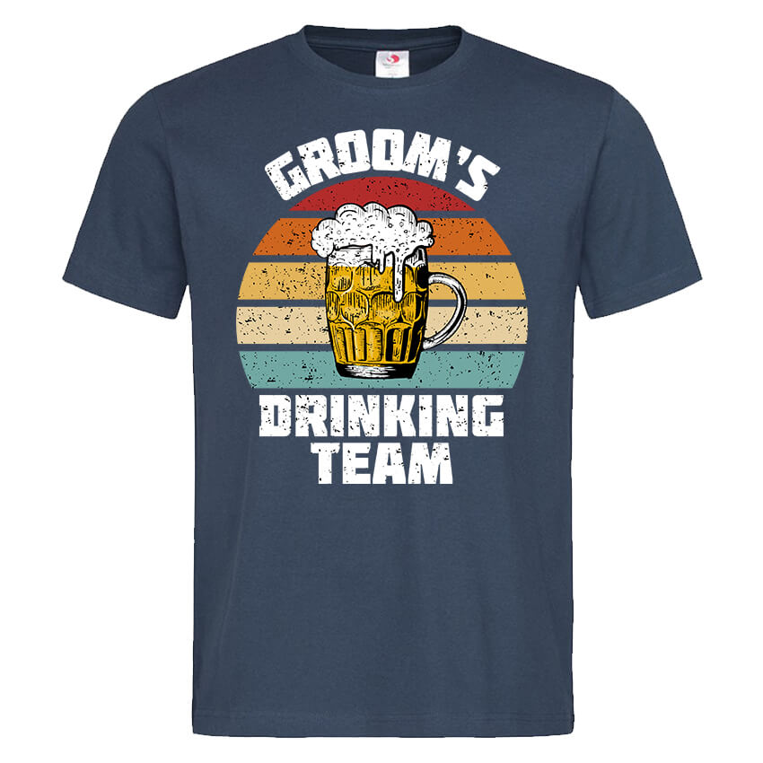 Мъжка Тениска Groom’s Drinking Team e тениска с уникален дизайн за ергенско парти, чудесно допълнение към аутфита за паметната или “безпаметна вечер”, създадена от In a MOOD – Онлайн магазин за тениски с щампи и надписи. Ние сме магазинът за настроение и създаваме дизайни на мъжки и дамски тениски. Стараем се да предлагаме забавни и оригинални дизайни на различни теми. Правим тениски, с които Вие да можете да изразите себе си по уникален начин. Ако имате нужда, можем да създадем и тениска по ваш дизайн. Можем също да променим по Ваше желание елементи в някои от предлаганите в магазина щампи и надписи. За целта само се свържете с нас чрез контактната форма на сайта или на email: info@inamood.bg. Предлагаме също така голямо разнообразие от ярки, светли и тъмни цветове – 17 цвята за мъжките и 17 цвята за дамските модели тениски. На различните дизайни сме поставили различни цветове, които пасват със съответния дизайн, но ако Вие искате друг цвят на тениската, не се колебайте да ни попитате. На ваше разположение сме за всякакви въпроси и информация относно магазина и предлаганите от нас продукти. Имаме една основна цел – да зарадваме и усмихнем колкото се може повече хора!