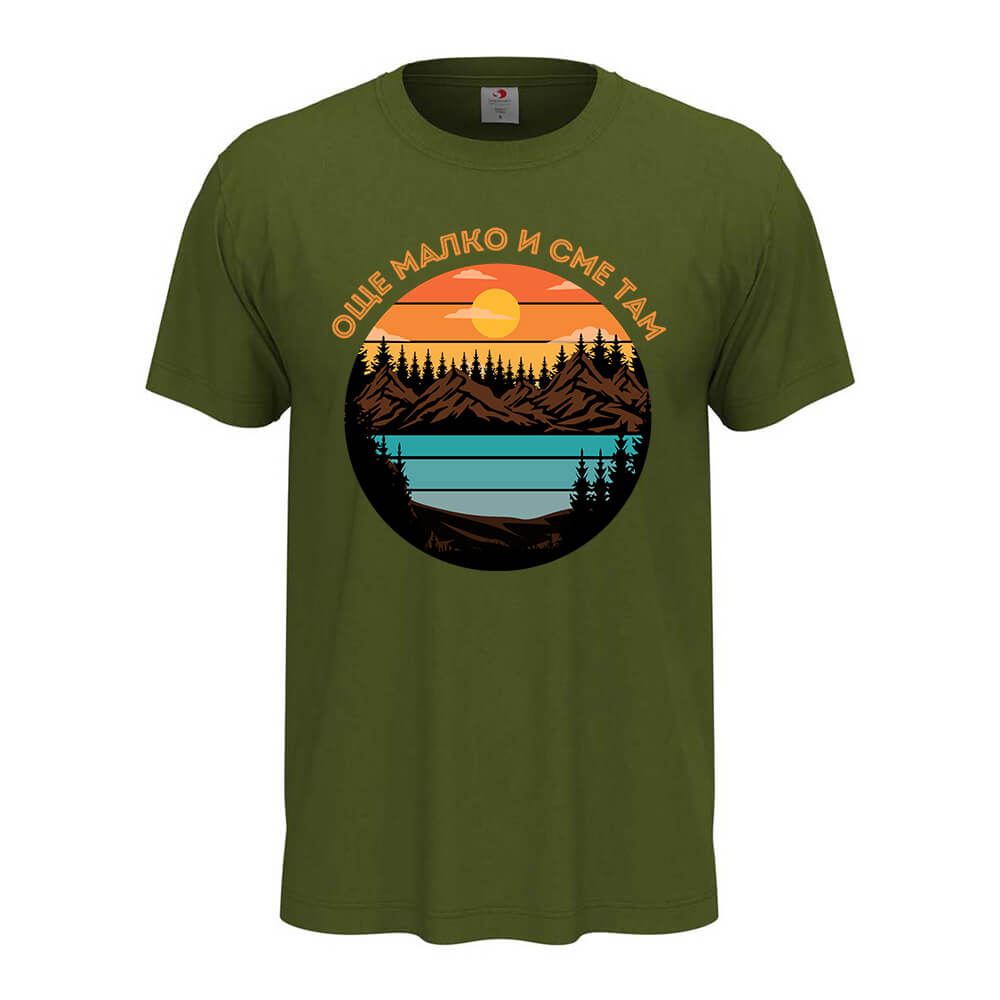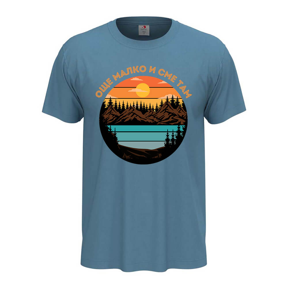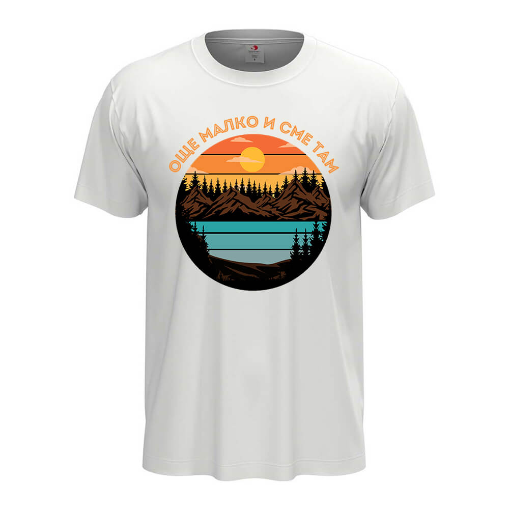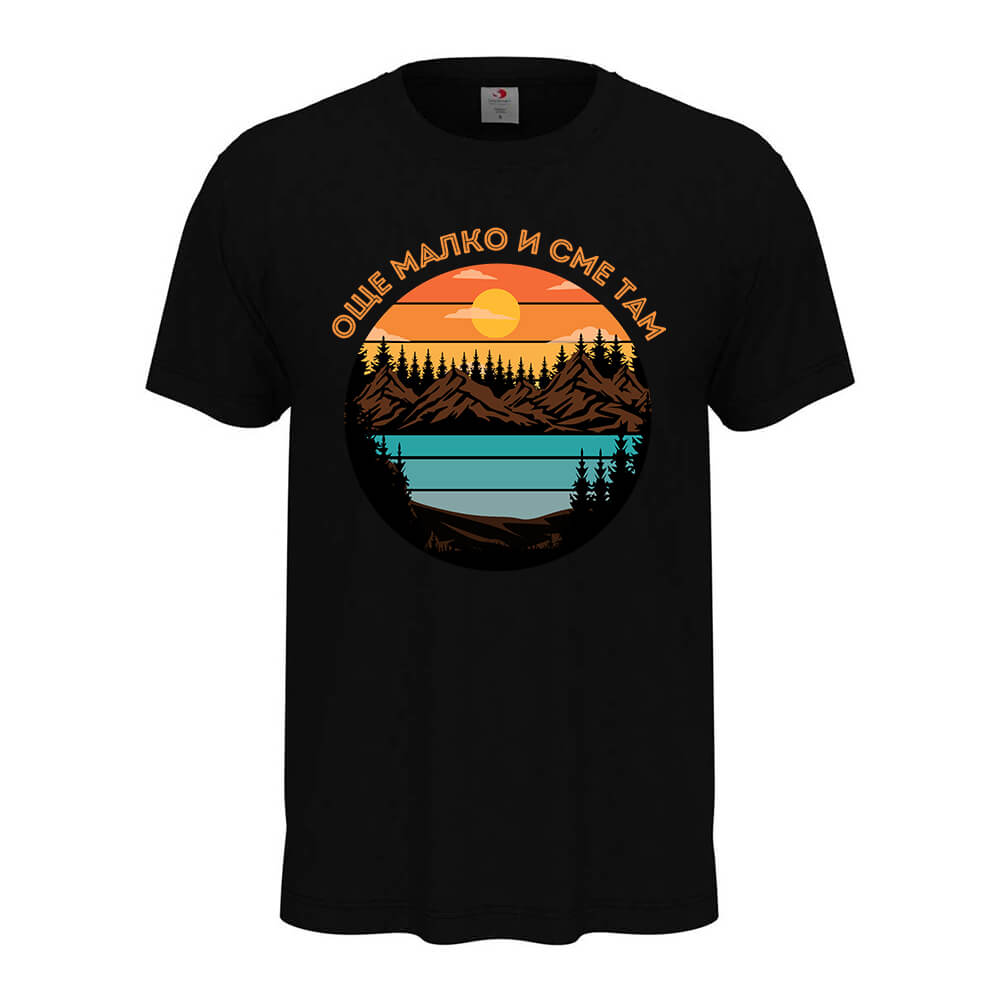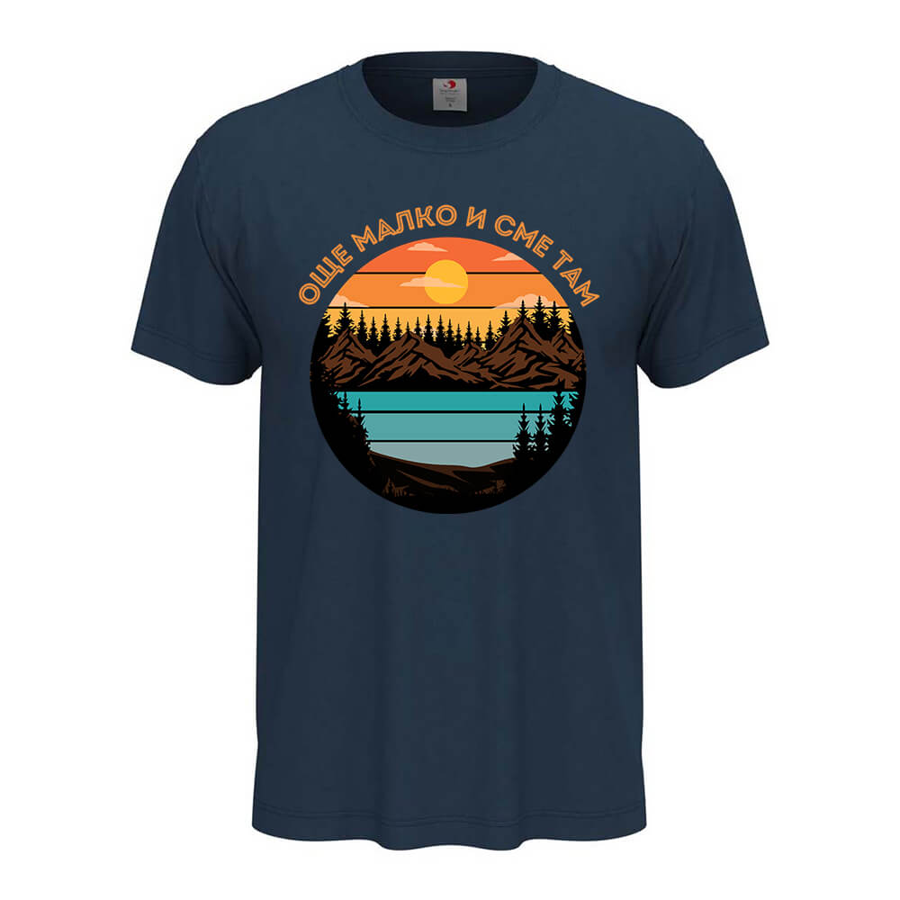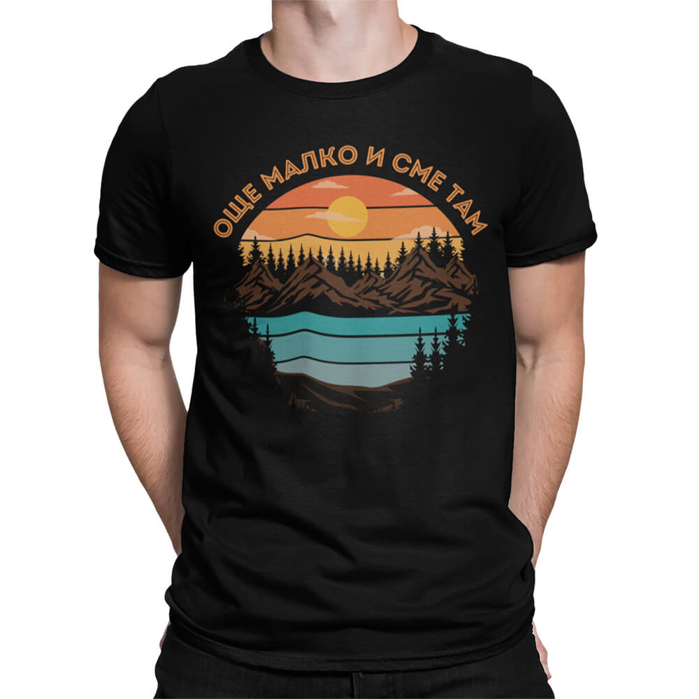 Мъжка Тениска с надпис “Още Малко и Сме Там” е идеалната тениска за всички, които обичат преходите в планината