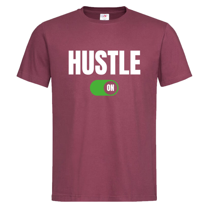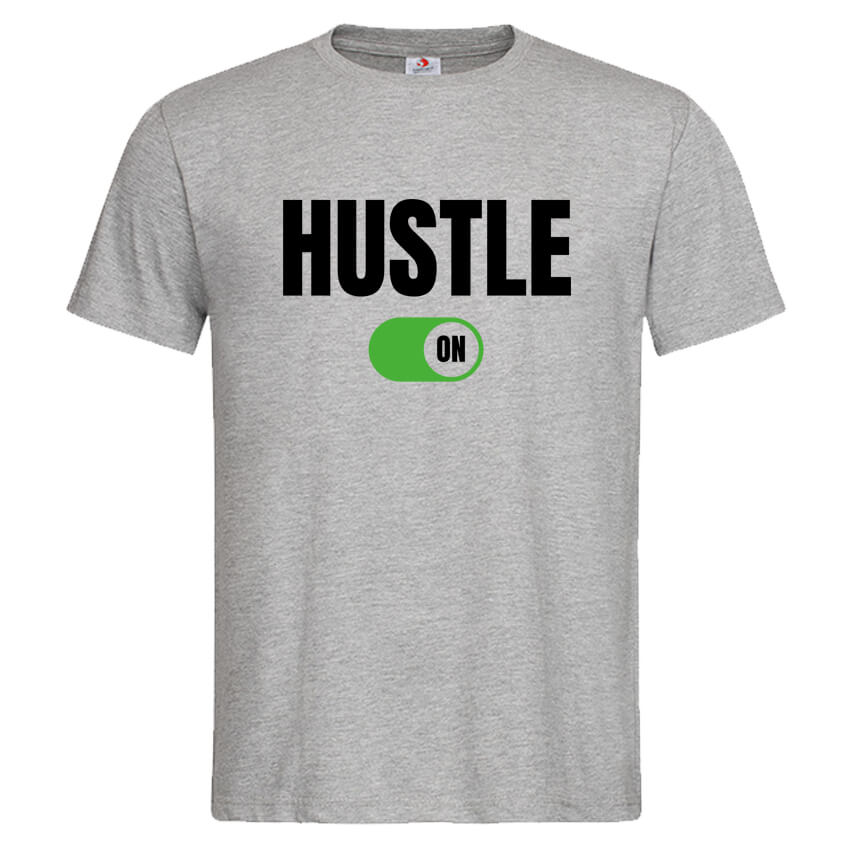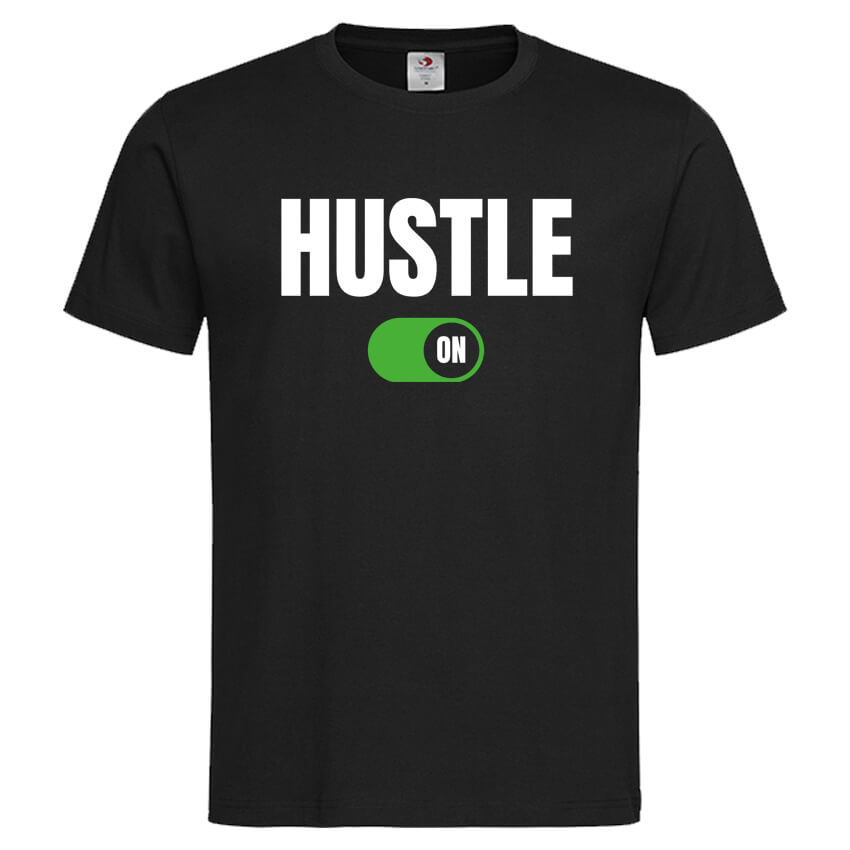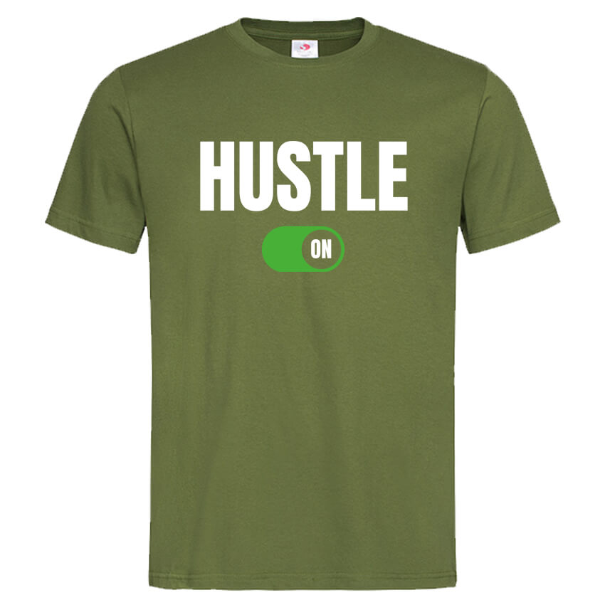 Мъжка Тениска Hustle On e тениска с готин надпис за предприемачи, създадена от In a MOOD – Онлайн магазин за тениски с щампи и надписи. Ние сме магазинът за настроение и създаваме дизайни на мъжки и дамски тениски. Стараем се да предлагаме забавни и оригинални дизайни на различни теми. Правим тениски, с които Вие да можете да изразите себе си по уникален начин. Ако имате нужда, можем да създадем и тениска по ваш дизайн. Можем също да променим по Ваше желание елементи в някои от предлаганите в магазина щампи и надписи. За целта само се свържете с нас чрез контактната форма на сайта или на имейл info@inamood.bg. Предлагаме също така голямо разнообразие от ярки, светли и тъмни цветове – 17 цвята за мъжките и 17 цвята за дамските модели тениски. На различните дизайни сме поставили различни цветове, които пасват със съответния дизайн, но ако Вие искате друг цвят тениска, не се колебайте да ни попитате. На ваше разположение сме за всякакви въпроси и информация относно магазина и предлаганите от нас продукти. Имаме една основна цел – да зарадваме и усмихнем колкото се може повече хора!