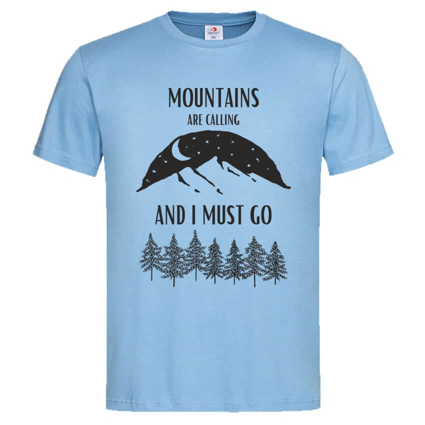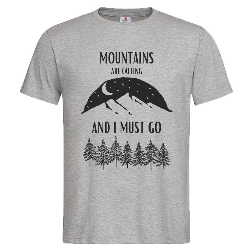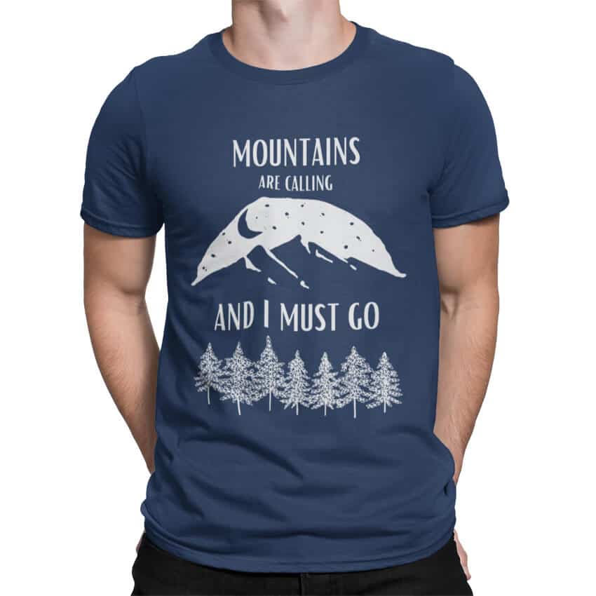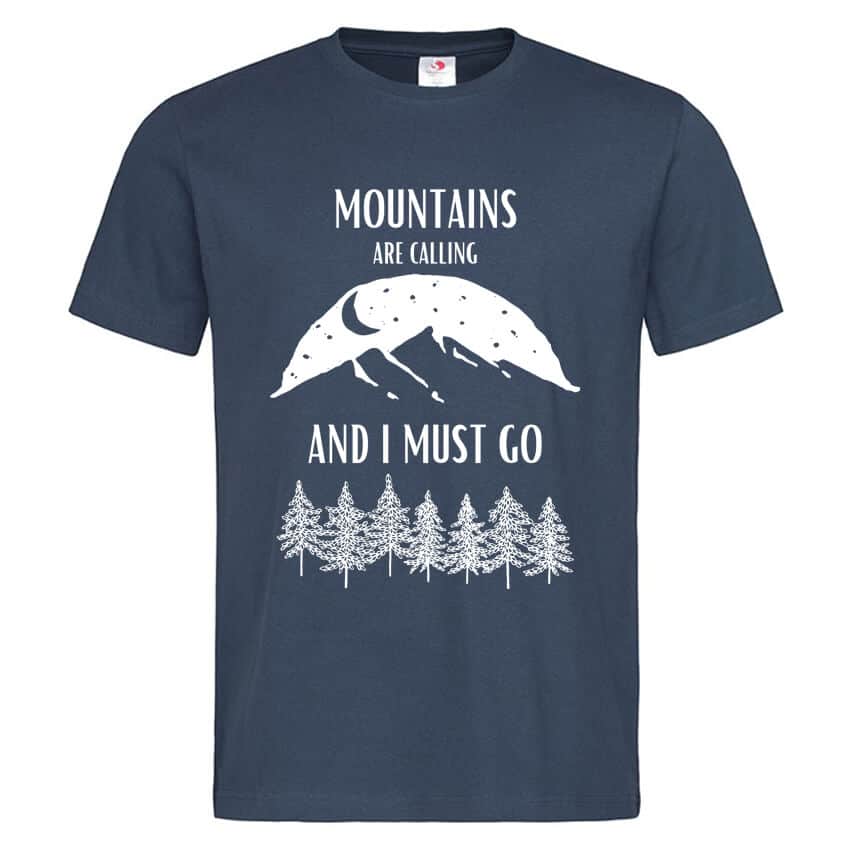 Мъжка тениска Mountains Are Calling e тениска със забавна щампа създадена от In a MOOD – Онлайн магазин за тениски с щампи и надписи. Ние сме магазинът за настроение и създаваме дизайни на мъжки и дамски тениски. Стараем се да предлагаме забавни и оригинални дизайни на различни теми. Правим тениски, с които Вие да можете да изразите себе си по уникален начин. Ако имате нужда, можем да създадем и тениска по ваш дизайн. Можем също да променим по Ваше желание елементи в някои от предлаганите в магазина щампи и надписи. За целта само се свържете с нас чрез контактната форма на сайта или на email: info@inamood.bg. Предлагаме също така голямо разнообразие от ярки, светли и тъмни цветове – 17 цвята за мъжките и 17 цвята за дамските модели тениски. На различните дизайни сме поставили различни цветове, които пасват със съответния дизайн, но ако Вие искате друг цвят на тениската, не се колебайте да ни попитате. На ваше разположение сме за всякакви въпроси и информация относно магазина и предлаганите от нас продукти. Имаме една основна цел – да зарадваме и усмихнем колкото се може повече хора!