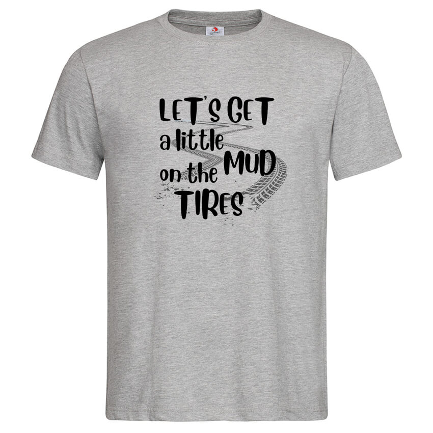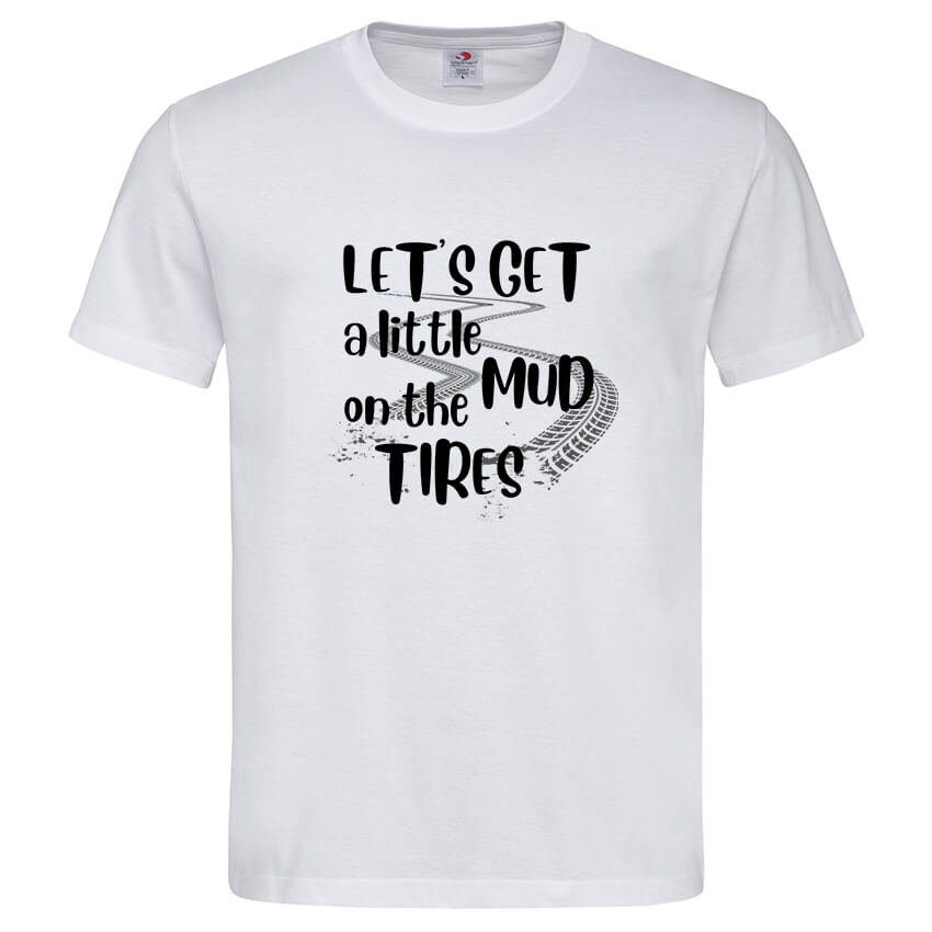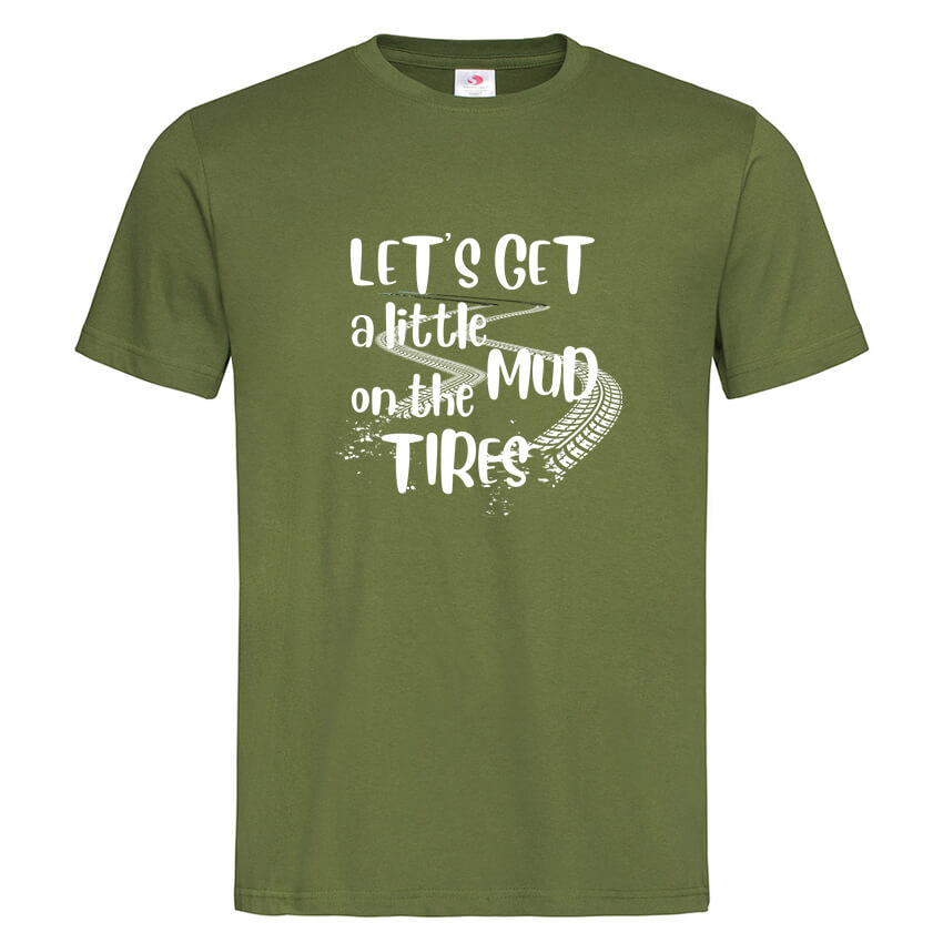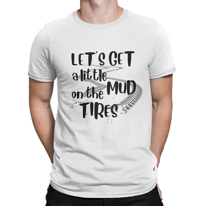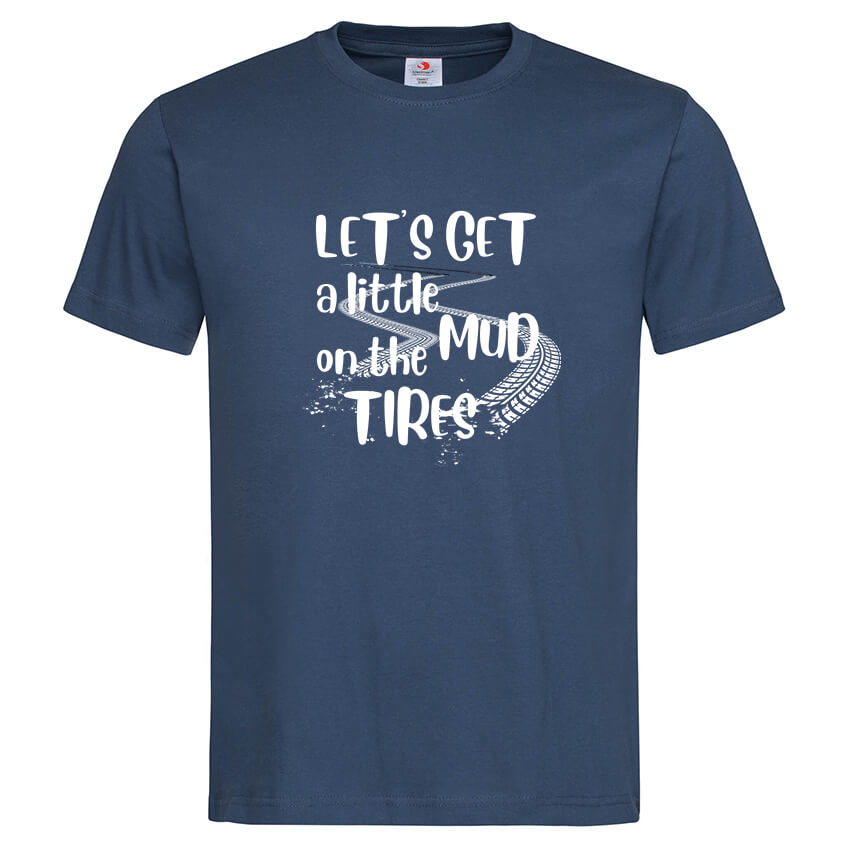 Мъжка Тениска Mud on the Tires e забавна тениска с щампа, създадена от In a MOOD – Онлайн магазин за тениски с щампи и надписи. Ние сме магазинът за настроение и създаваме дизайни на мъжки и дамски тениски и унисекс суичъри. Стараем се да предлагаме забавни и оригинални дизайни на различни теми. Правим тениски, с които Вие да можете да изразите себе си по уникален начин. Ако имате нужда, можем да създадем и тениска по ваш дизайн. Можем също да променим по Ваше желание елементи в някои от предлаганите в магазина щампи и надписи. За целта само се свържете с нас чрез контактната форма на сайта или на email: info@inamood.bg. Предлагаме също така голямо разнообразие от ярки, светли и тъмни цветове – 17 цвята за мъжките и 17 цвята за дамските модели тениски. На различните дизайни сме поставили различни цветове, които пасват със съответния дизайн, но ако Вие искате друг цвят на тениската, не се колебайте да ни попитате. На ваше разположение сме за всякакви въпроси и информация относно магазина и предлаганите от нас продукти. Имаме една основна цел – да зарадваме и усмихнем колкото се може повече хора!
