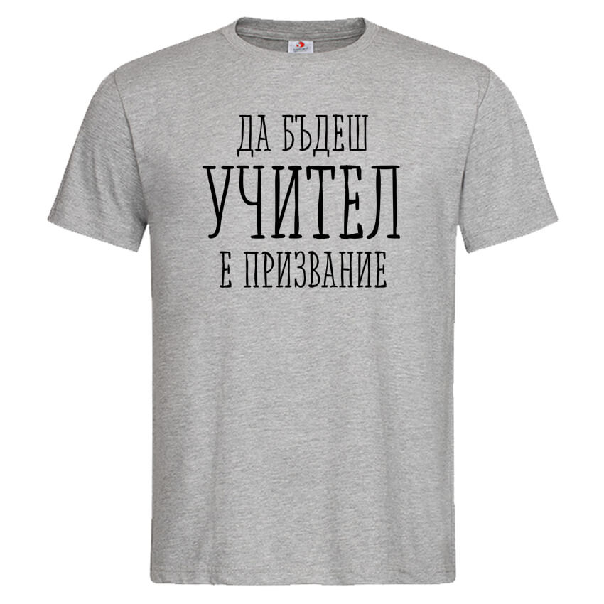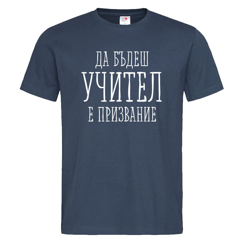 Мъжка тениска Призвание Учител e тениска с готин надпис, създадена от In a MOOD – Онлайн магазин за тениски с щампи и надписи. Ние сме магазинът за настроение и създаваме дизайни на мъжки, дамски и детски тениски. Стараем се да предлагаме забавни и оригинални дизайни на различни теми. Правим тениски, с които Вие да можете да изразите себе си по уникален начин. Ако имате нужда, можем да създадем и тениска по ваш дизайн. Можем също да променим по Ваше желание елементи в някои от предлаганите в магазина щампи и надписи. За целта само се свържете с нас чрез контактната форма на сайта или на email: info@inamood.bg. Предлагаме също така голямо разнообразие от ярки, светли и тъмни цветове – 17 цвята за мъжките и 17 цвята за дамските модели тениски. На различните дизайни сме поставили различни цветове, които пасват със съответния дизайн, но ако Вие искате друг цвят на тениската, не се колебайте да ни попитате. На ваше разположение сме за всякакви въпроси и информация относно магазина и предлаганите от нас продукти. Имаме една основна цел – да зарадваме и усмихнем колкото се може повече хора!