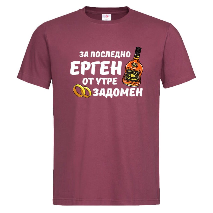 Мъжка тениска За Последно Ерген e забавна тениска с щампа, създадена от In a MOOD – Онлайн магазин за тениски с щампи и надписи. Ние сме магазинът за настроение и създаваме дизайни на мъжки и дамски тениски и унисекс суичъри. Стараем се да предлагаме забавни и оригинални дизайни на различни теми. Правим тениски, с които Вие да можете да изразите себе си по уникален начин. Ако имате нужда, можем да създадем и тениска по ваш дизайн. Можем също да променим по Ваше желание елементи в някои от предлаганите в магазина щампи и надписи. За целта само се свържете с нас чрез контактната форма на сайта или на email: info@inamood.bg. Предлагаме също така голямо разнообразие от ярки, светли и тъмни цветове – 17 цвята за мъжките и 17 цвята за дамските модели тениски. На различните дизайни сме поставили различни цветове, които пасват със съответния дизайн, но ако Вие искате друг цвят на тениската, не се колебайте да ни попитате. На ваше разположение сме за всякакви въпроси и информация относно магазина и предлаганите от нас продукти. Имаме една основна цел – да зарадваме и усмихнем колкото се може повече хора!